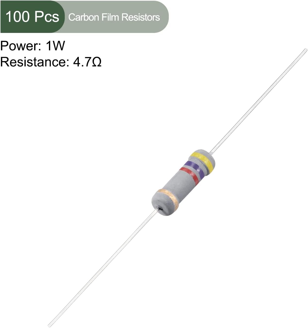 Yokive 100PCSカーボンフィルム抵抗器1W 4.7Kオーム5%許容抵抗器用電子プロジェクト4カラーバンド60×3.5mm