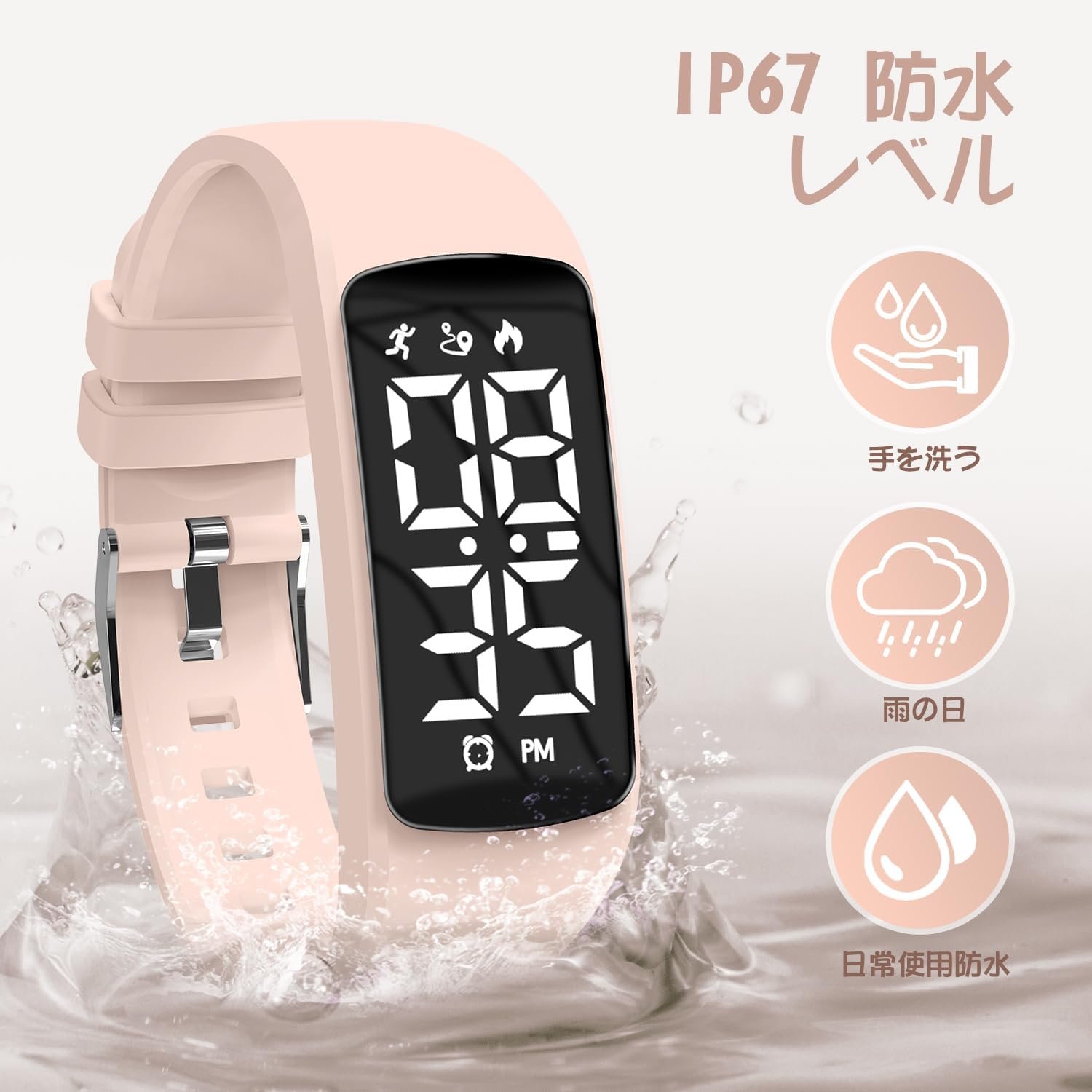 腕時計、男の子と子供、アクティビティメーター、子供、デジタルウォッチ、女の子、IP67防水、充電式、スポーツウォッチ、歩数計、距離、カロリー、アラーム、ストップウォッチ、日付ディスプレイ、長持ちする