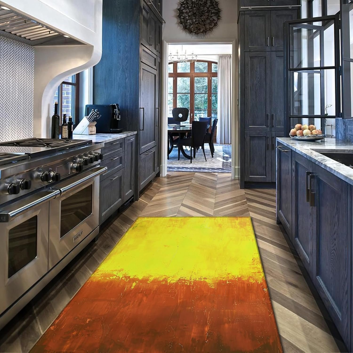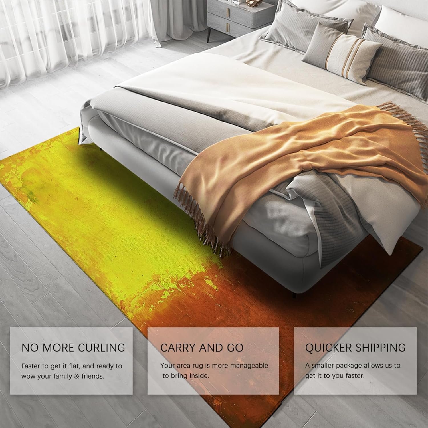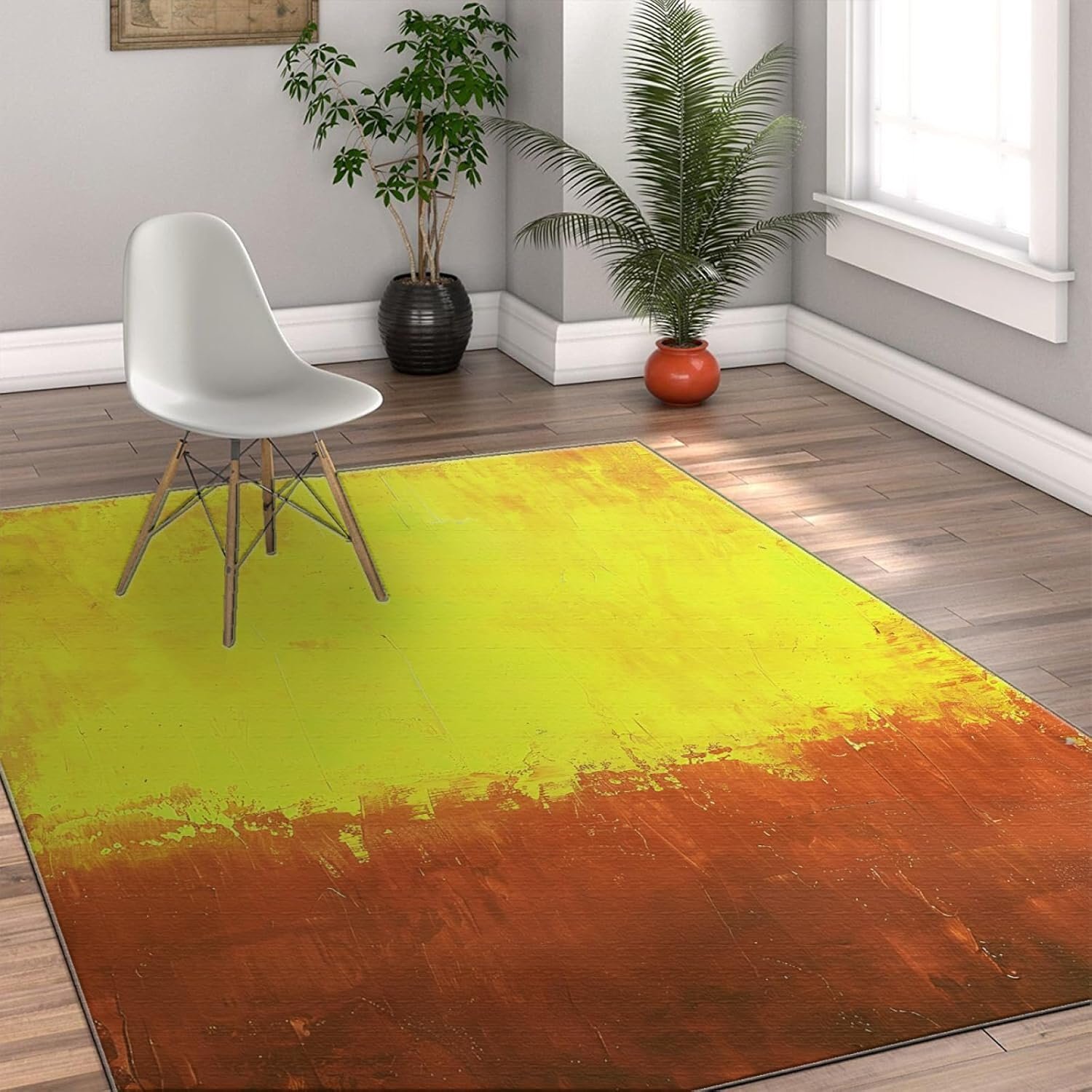 オレンジと黄色のカーペット機械洗える滑り止めランナーラグリビングルームモダンソフト居心地の良いカーペットベッドルームダイニング100x150cm
