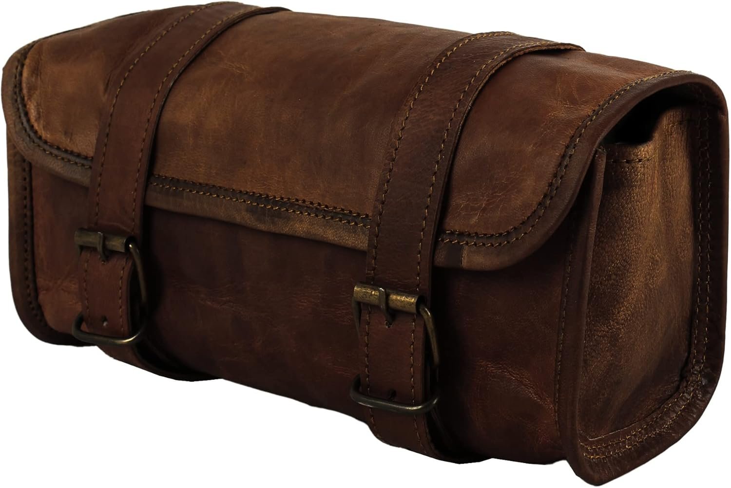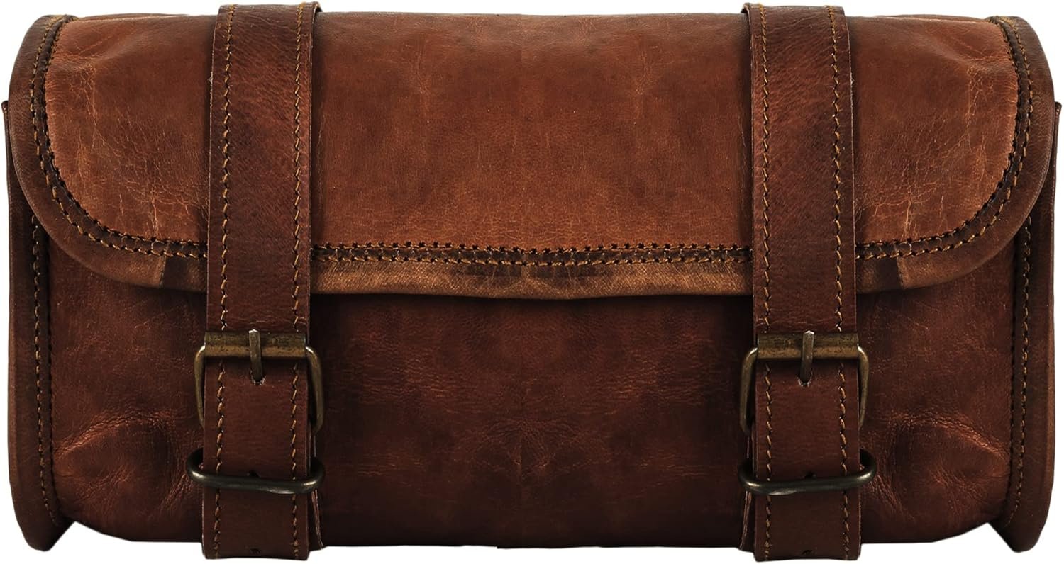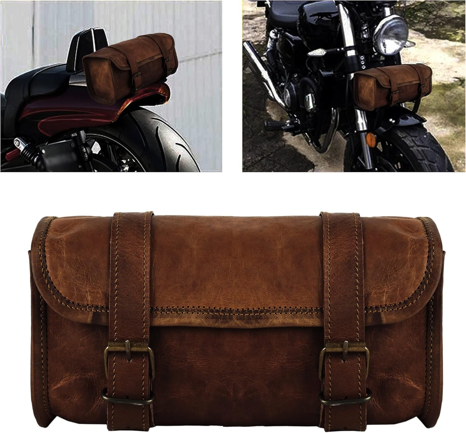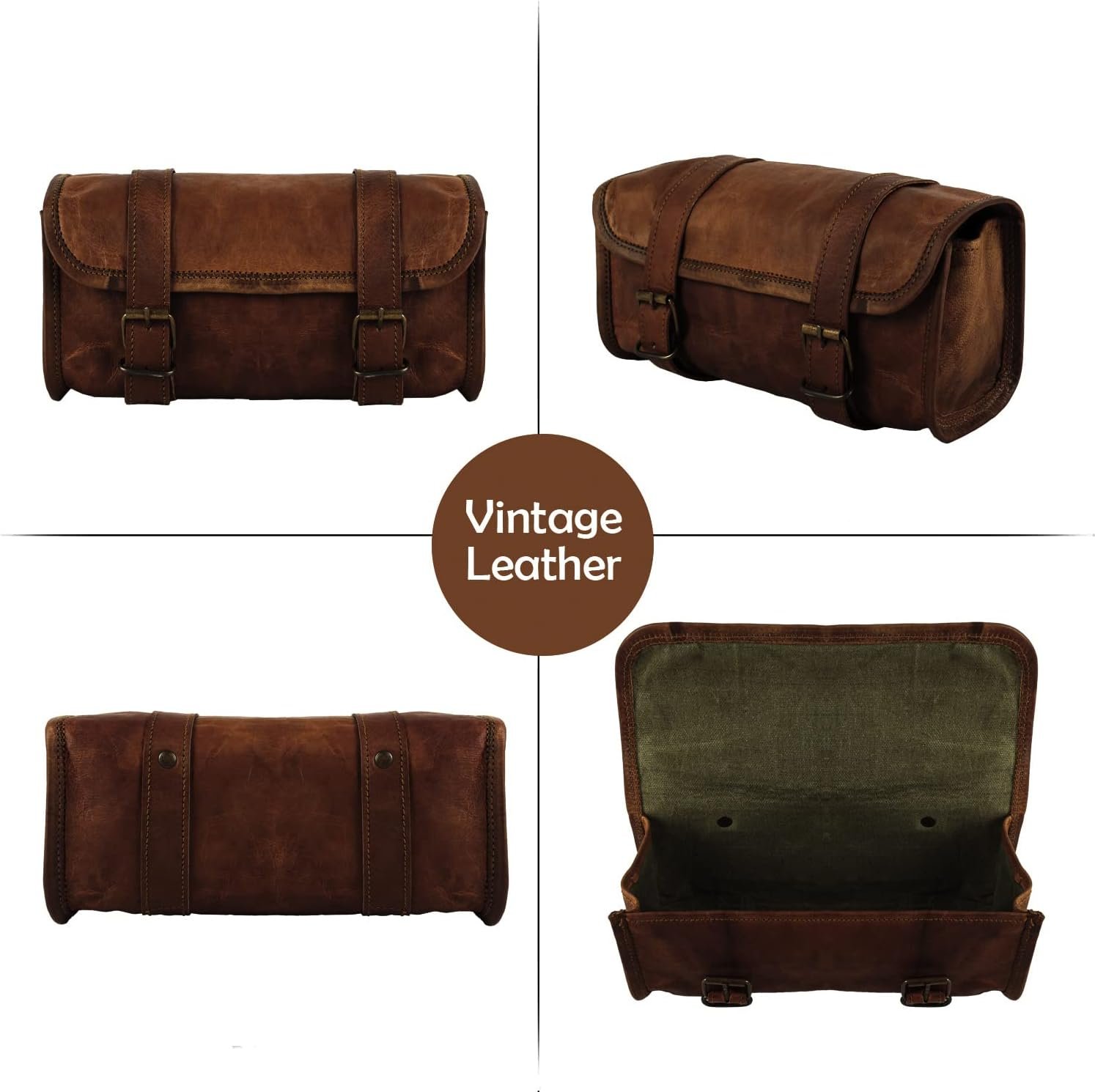 オートバイ本物のレザービンテージツールバッグ2ストラップバックル閉鎖