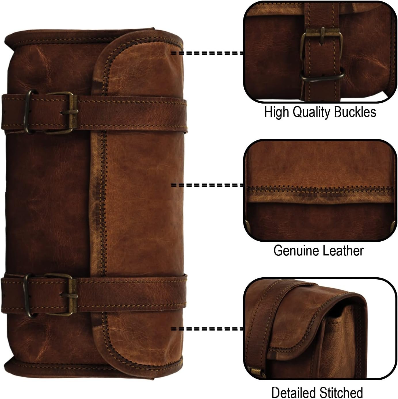 本革のヴィンテージオートバイ2ストラップバックルクロージャーツールバッグ、ブラウンハンドルバーシシーバーツールポーチロールバッグ-10 “