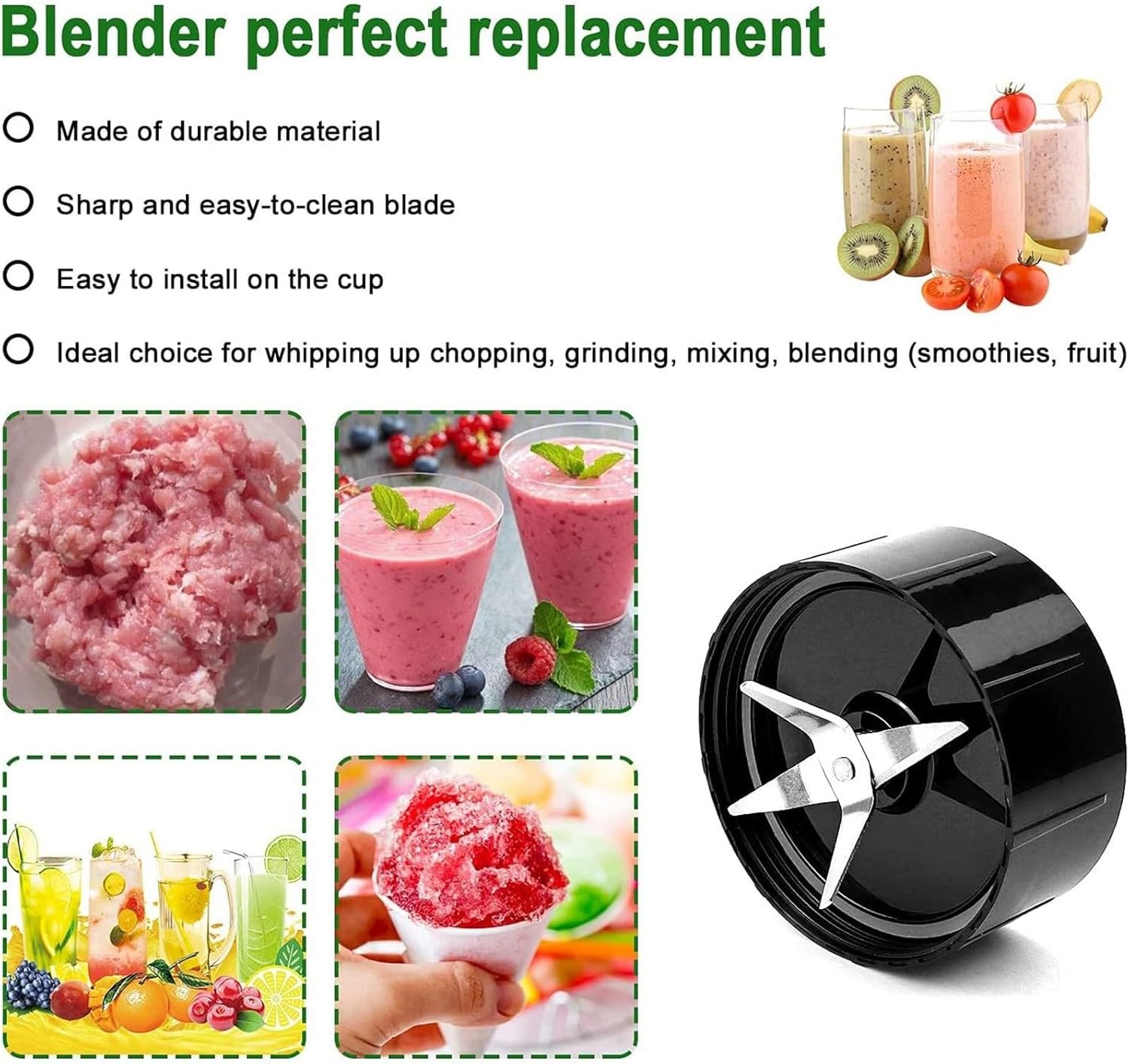耐久性のあるブレード:このブレンダーブレードは、すべてのブレンディングニーズに最適な切断パワーを提供するように設計されています。スムージー、スープ、ソース、または他のものを作っているかどうかにかかわらず、この高品質のブレードはすべてをスムーズにブレンドします。ブレンダー交換用ブレードは、ブレンダーの最高のパフォーマンスを維持するために不可欠であり、毎回スムーズで効率的な仕上げを確保する