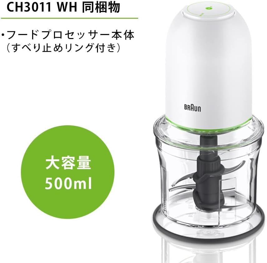 茶色のフードプロセッサー、マルチプラクティック3 CH3011Whコンパクト、簡単な操作、強力な4ブレードグラインド肉、チョッピング、氷、砕いた氷、時間節約、安全なデザイン、片手、1回のタッチ、1回のプッシュ、簡単にきれいに