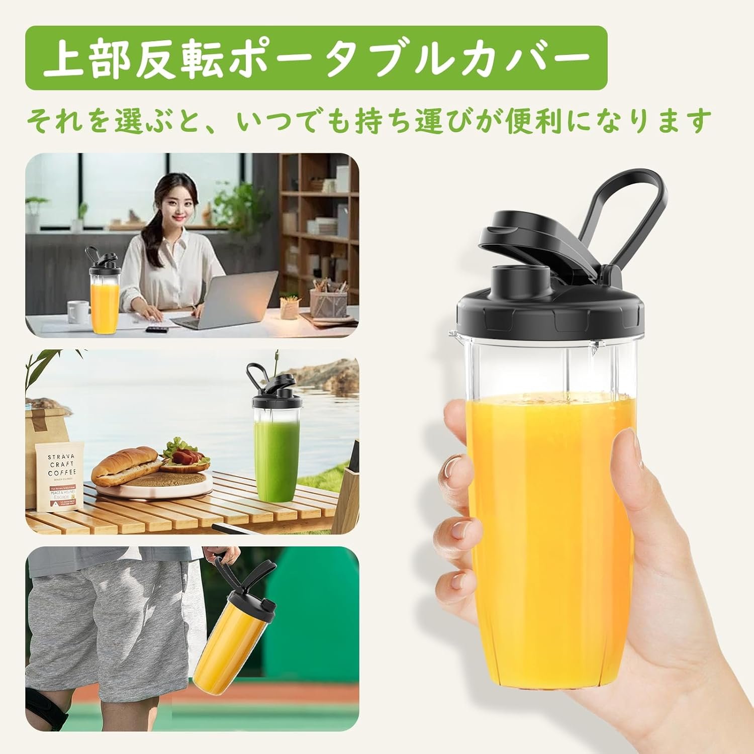 使いやすい:ブレンダーカップには、ボディに滑り止めストライプがあり、握りやすくなります。カップには直接飲み物がありますので、蓋を開けずに飲むことができます。カップのふたには、便利な持ち運びのためのハンドルがあります