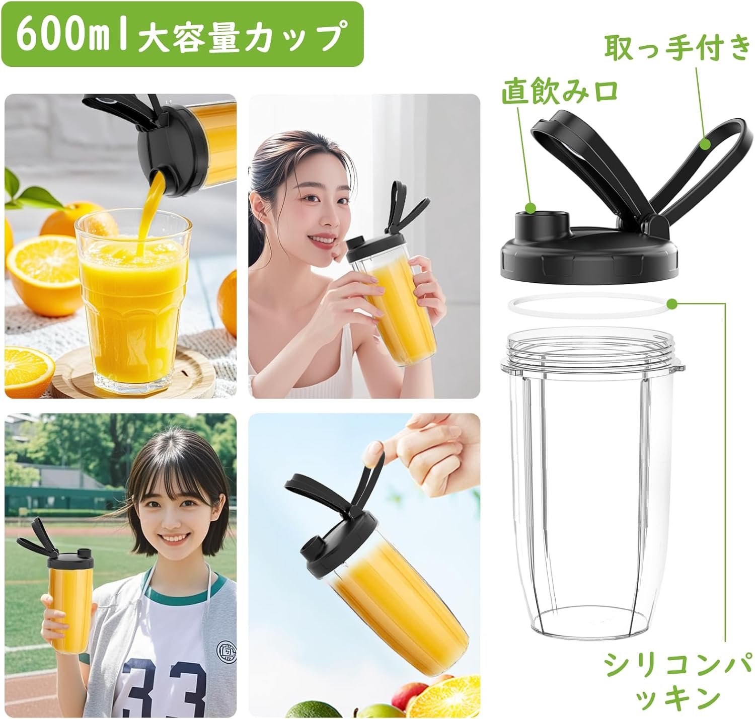 23.6 fl oz(600 ml)交換ジュースカップ +スパウトカップミキサー、ブレンダーカップ(23.6 fl oz(600 ml)大容量、ジュースカップ、スムージーカップ、大容量、ミキサーパーツ、ブレンダー交換、使いやすい、