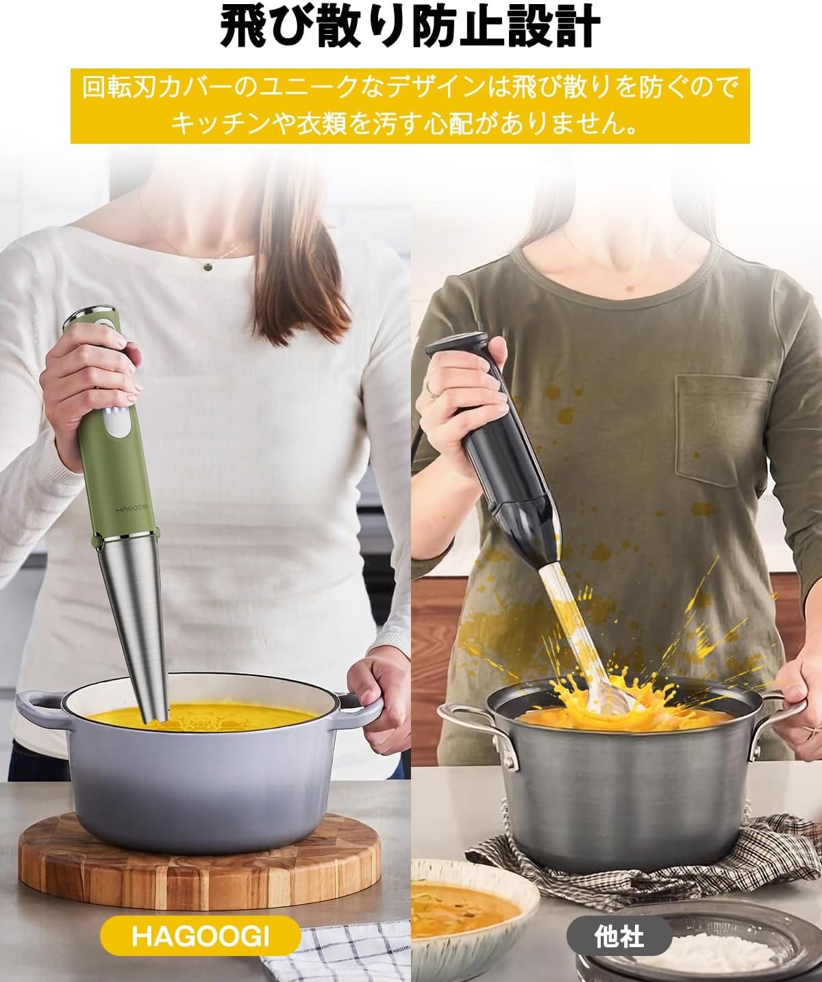 hagoogiマルチスティックベビーフードブレンダー、充電式、段階的なスピードブレンダー、ポットの傷を防ぎ、氷、フードプロセッサ、ジューサー、泡立て器、7-in-1調理器具