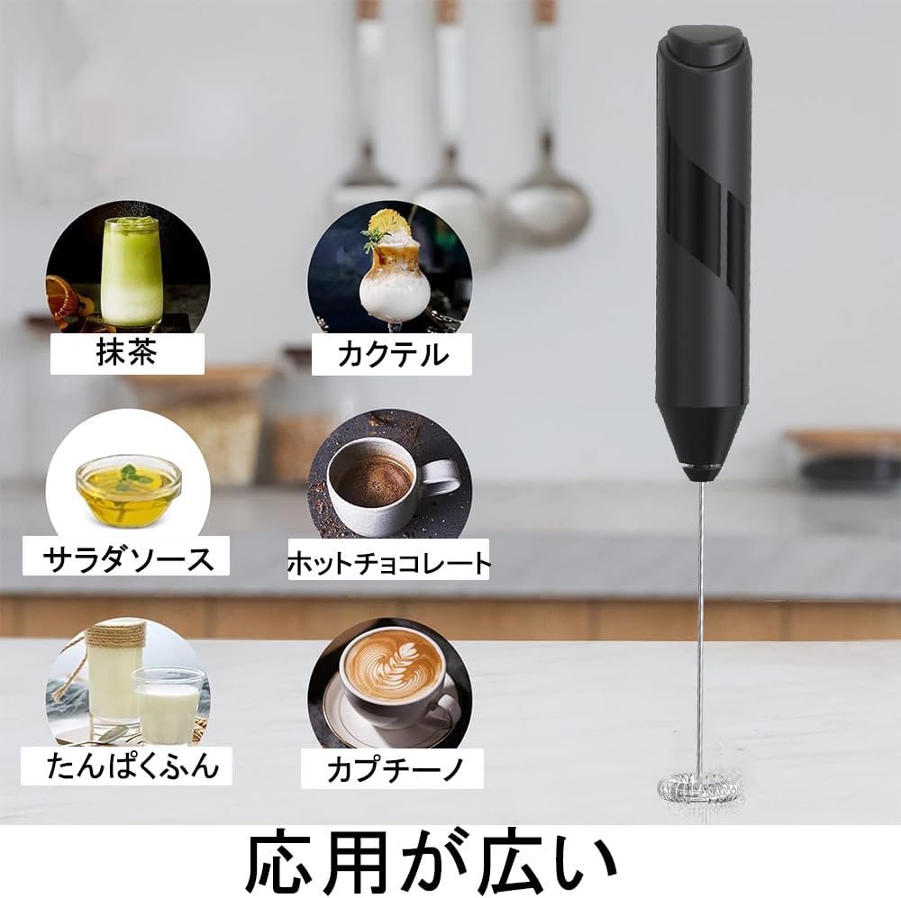 幅広い用途:コーヒー、カプチーノ、シェイク、抹茶、ホットチョコレート、ミックスドリンク、カクテル、ミルクフォームを作るだけでなく、卵やソースなどの他の液体食品をかき混ぜることもできます