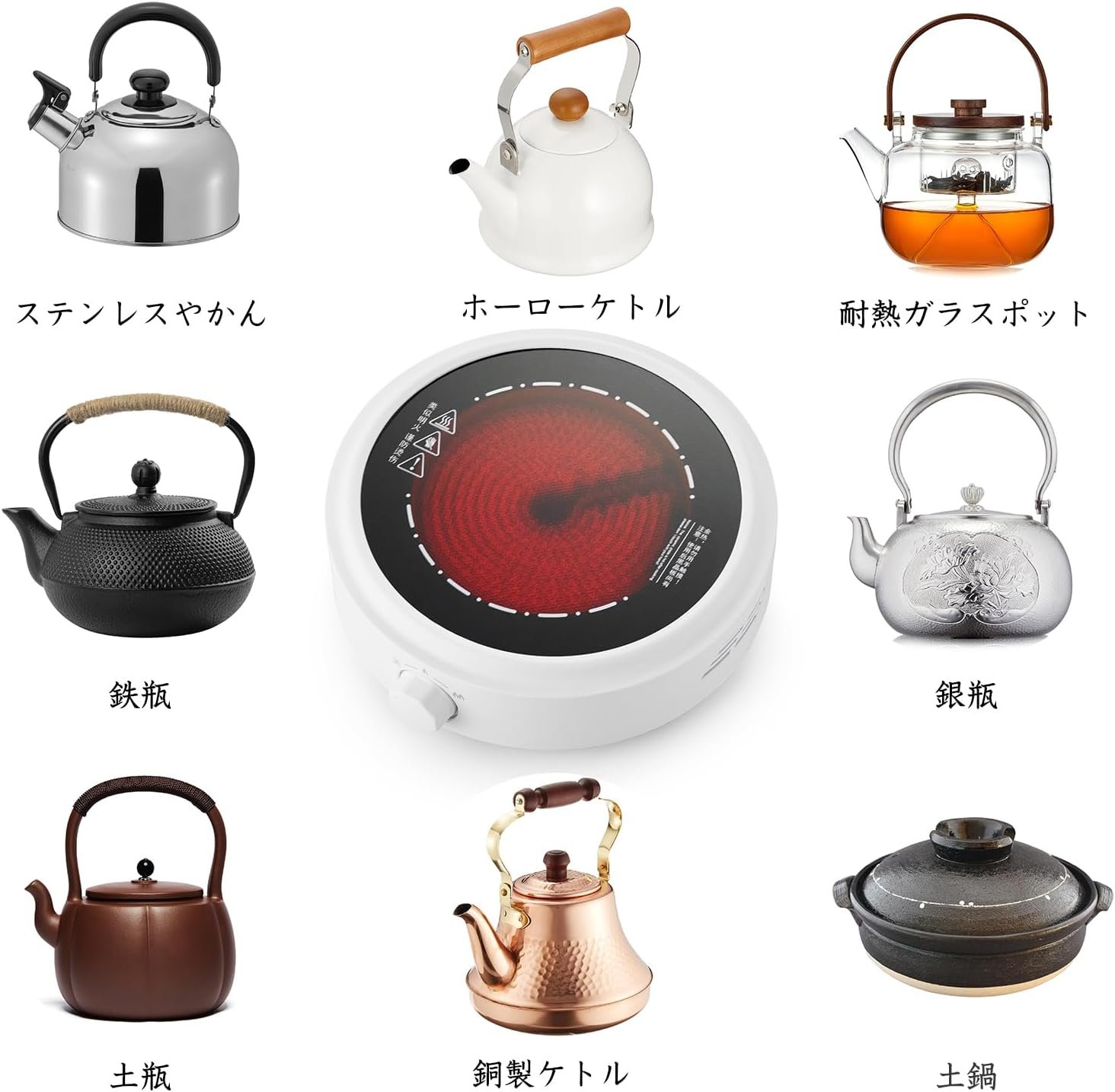 ポカロティ電気ストーブ、遠赤外線暖房、茶、電気ヒーター、電気ヒーター、電気ヒーター、電気ケトルスタンド、茶製作、沸騰ティー、ラーメン、酒、お湯が沸騰する可能性があります。