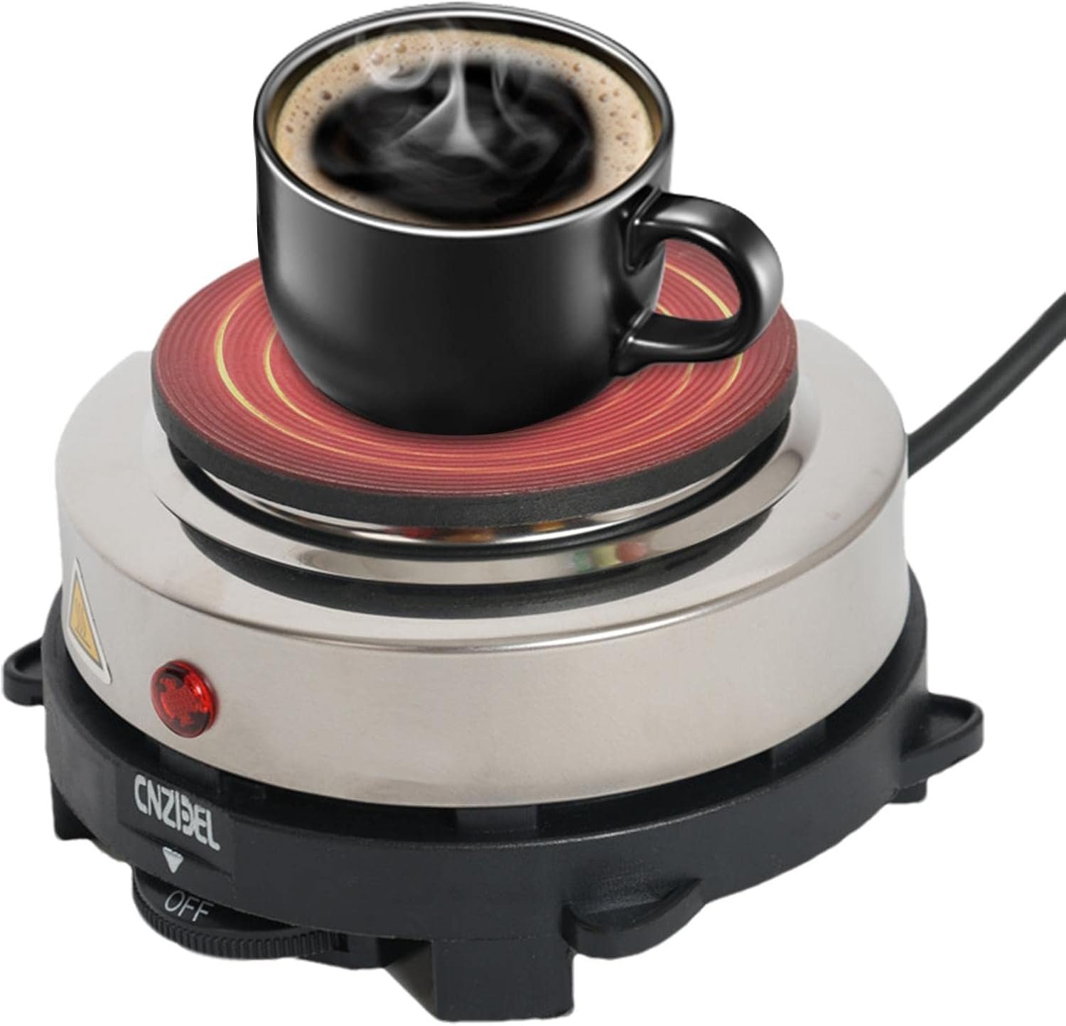 小さな電動ホットプレート|ハンドル付き500Wポータブルストーブ、家庭寮のオフィス用のポータブルカウンターストーブ、水、茶、牛乳、温度制御、清掃が簡単な暖房カップ暖かいトリビュラス