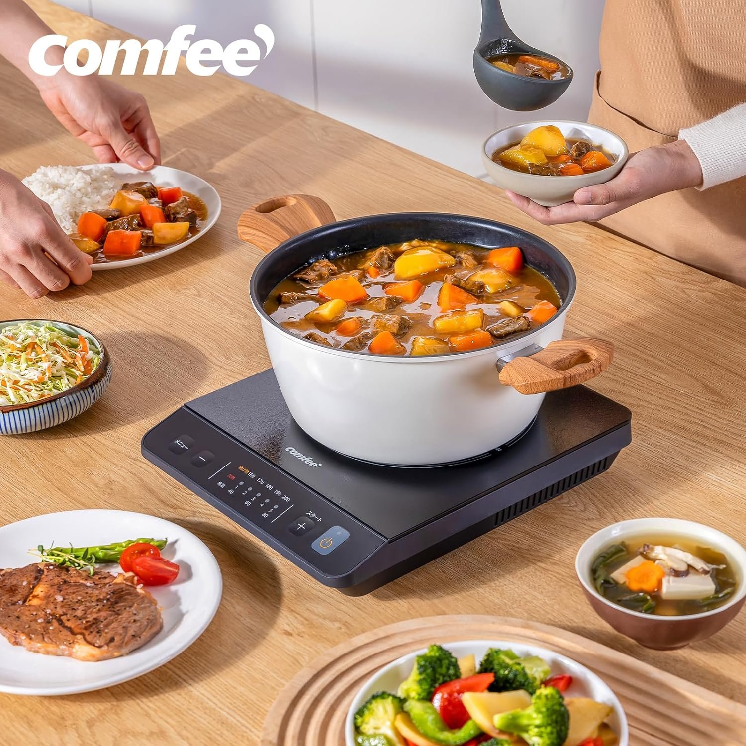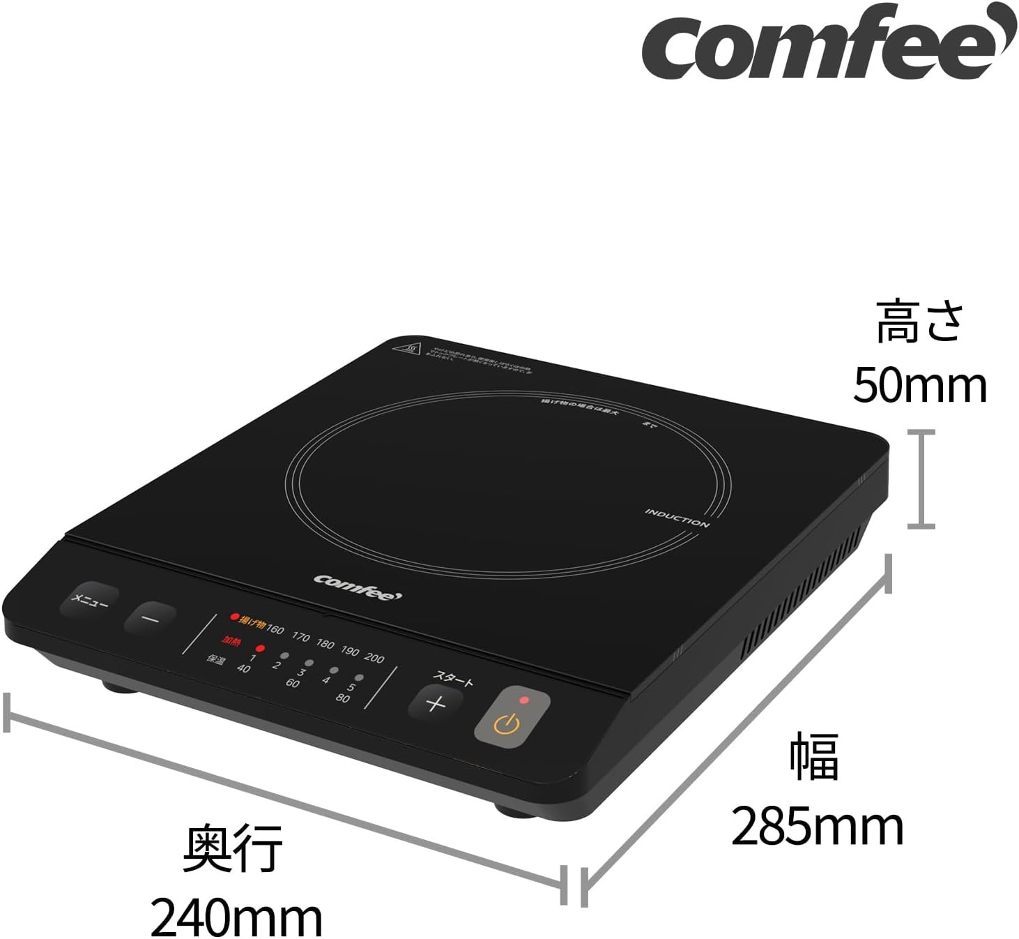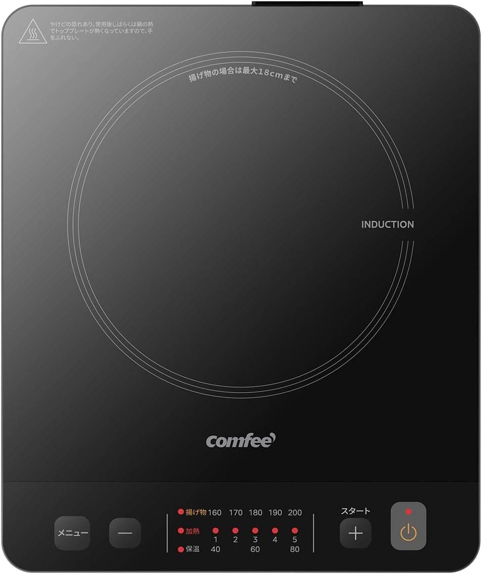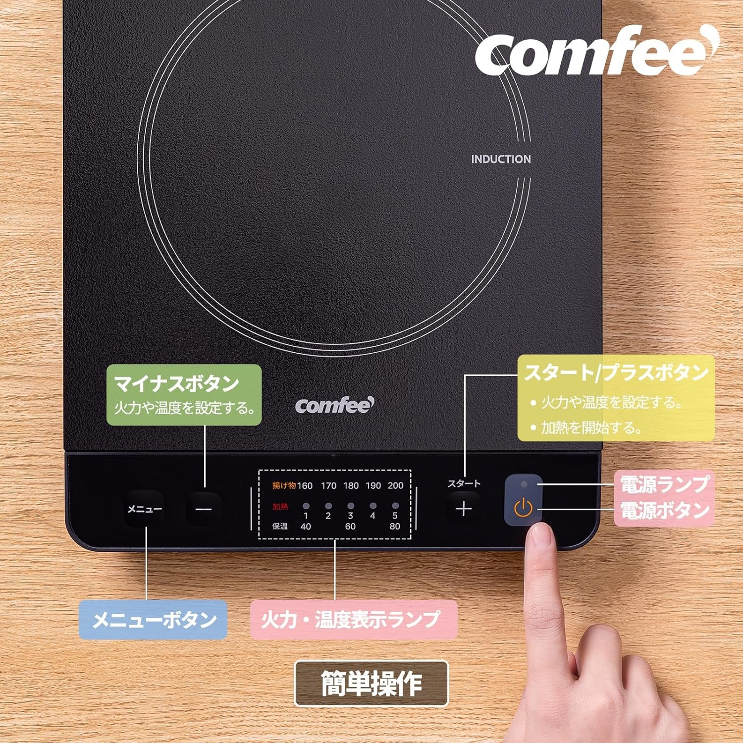 comfee ‘cic-10gkbla1クッキングヒーター、誘導タイプ、薄い、1000ワット、3種類のメニュー、揚げ物、3層熱保持、炒め物調理