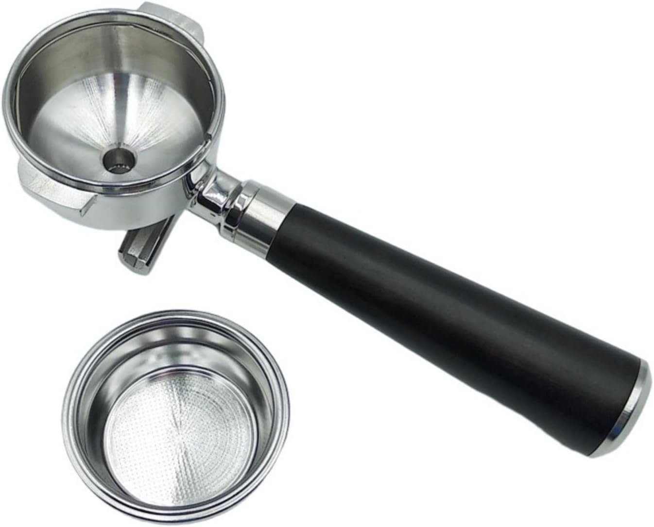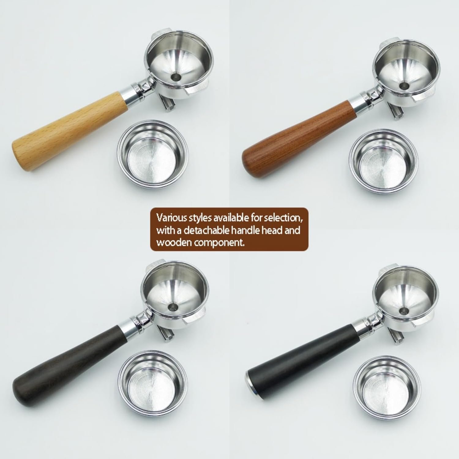 木材とステンレス鋼で作られた58mme61エスプレッソマシン用のこの二重耳ハンドルは、エレガンスと耐久性を組み合わせたコーヒーを作る豪華なタッチを提供します。