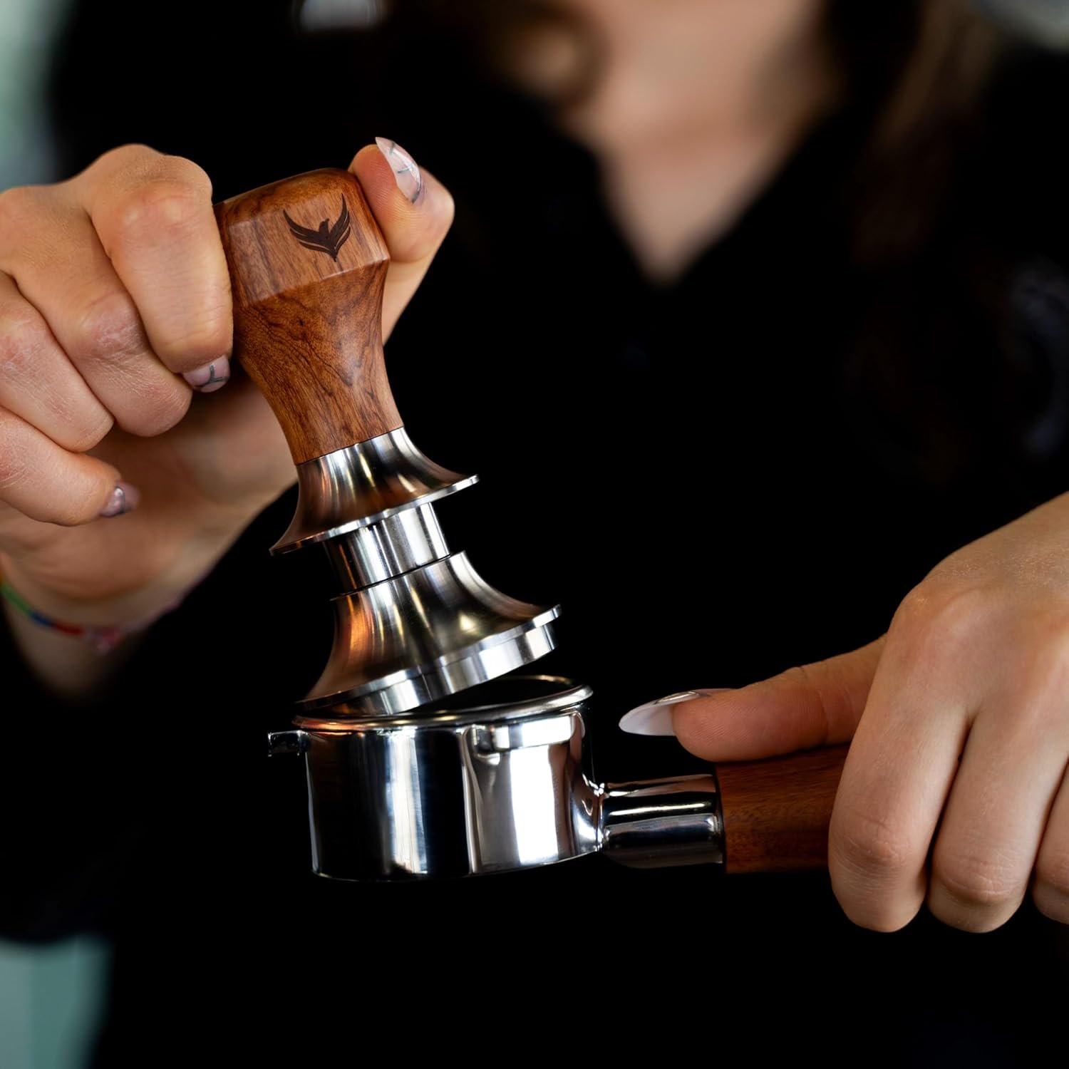 この58mmのタンパーには、簡単に使用できる自己レベルのスプリングロードデザインがあります。また、コーヒーを一貫して圧縮し、従来のハンドタンパーと比較して醸造を増加させる一定のブロック機能があります
