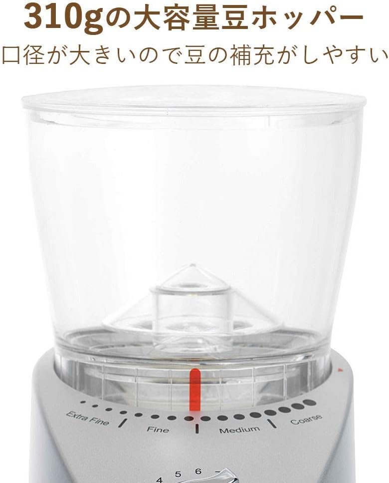 大きな11.8オンス(310 g)のビーンホッパーが装備されています。直径は大きく、豆を補充しやすいです。