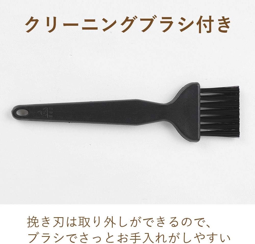 上部の研削式ブレードは取り外し可能であるため、付属のクリーニングブラシで簡単に掃除できます。