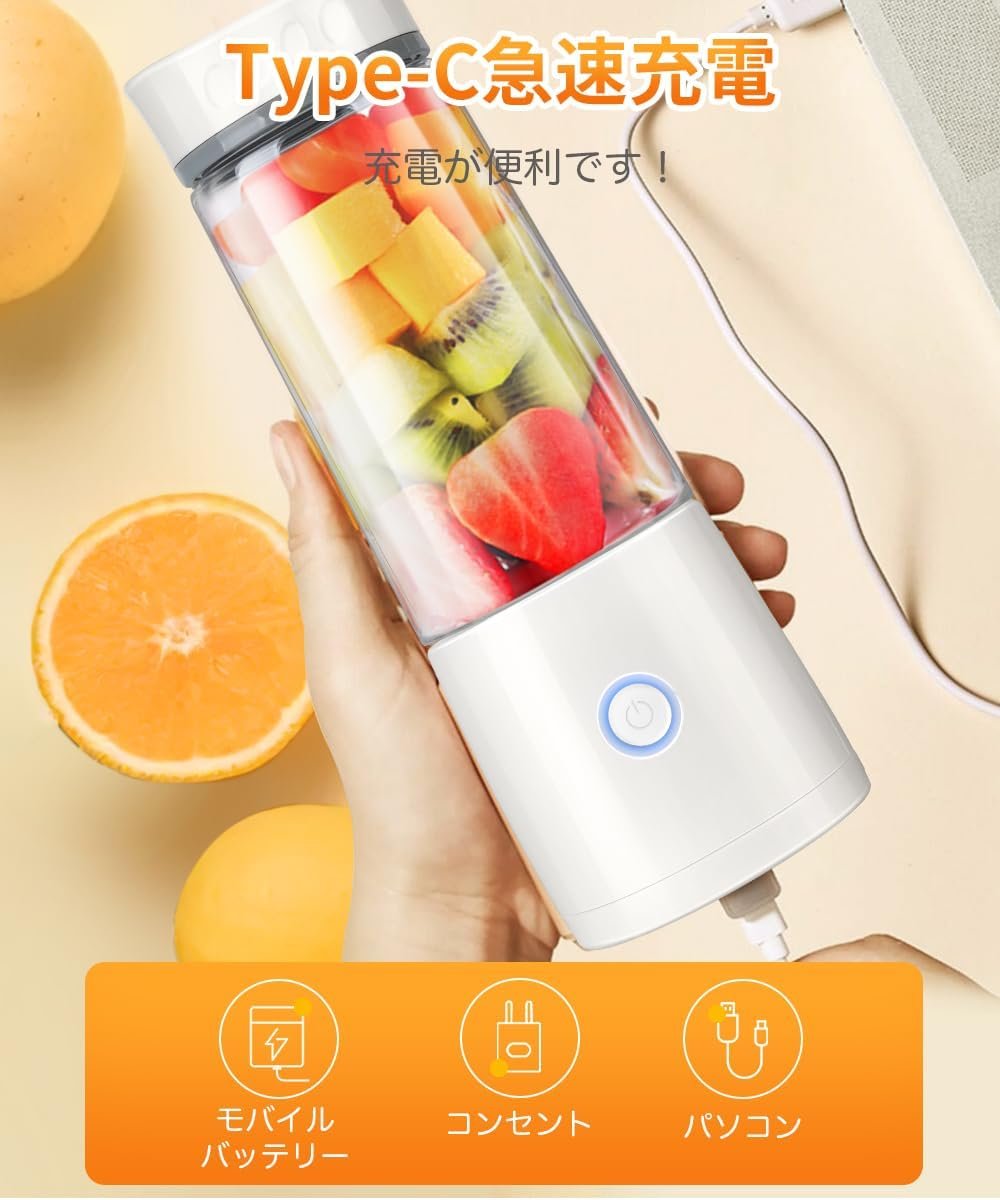 【操作簡単・携帯便利・大容量ボトル】ミニジューサーはボタンをワンプッシュするだけで連続運転できます。自動洗浄機能も付いており、水を加えてジューサーを作動させると、ブレードの死角にある残留物を簡単に取り除くことができます。ワイヤレス設計でコンパクトかつ軽量なので、外出先での持ち運びに便利です。大容量のボトルが2本あり、いつでも洗って交換できます。
