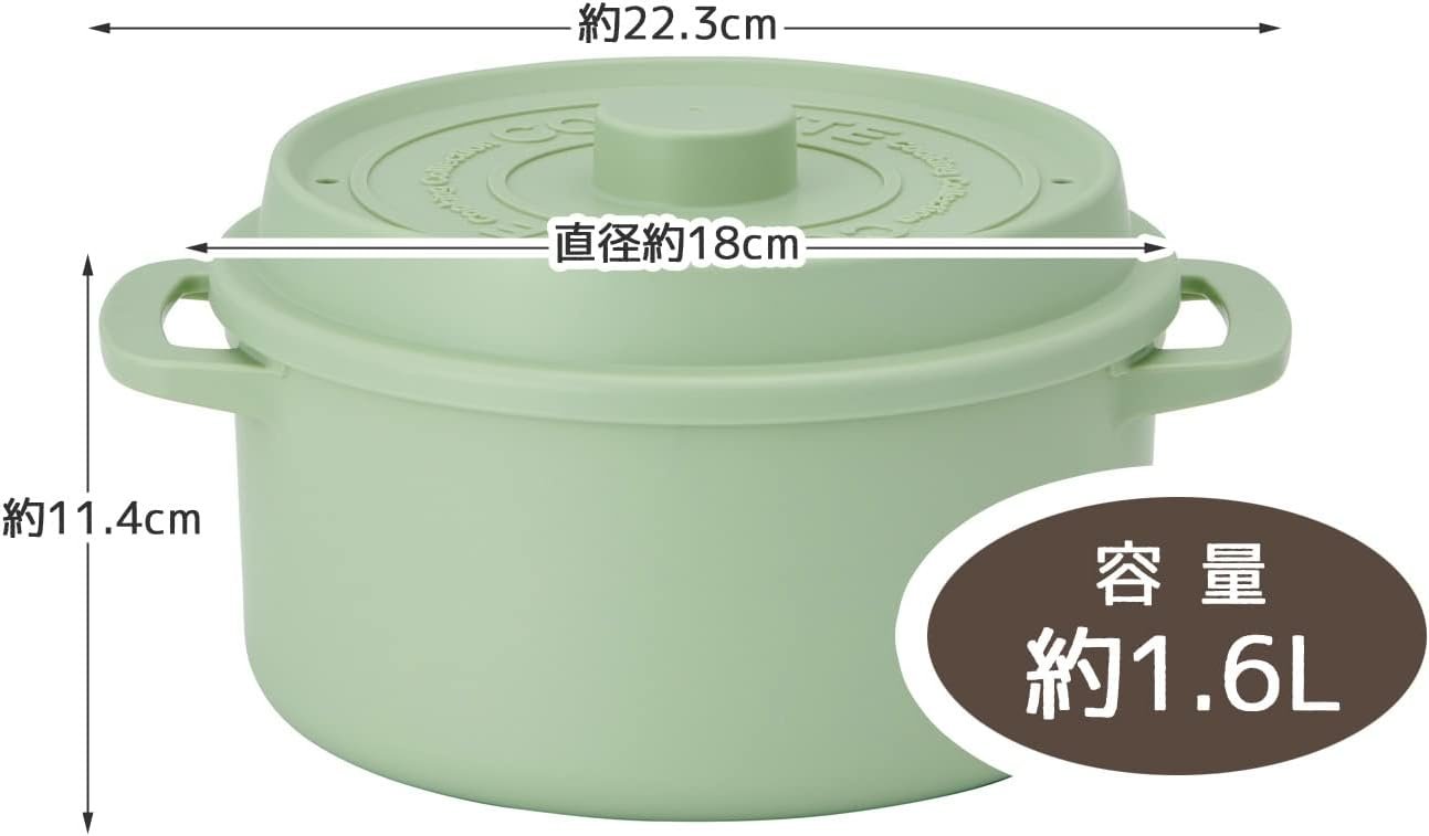 スケーターMWCP2-A Cocotteスタイルのマイクロ波ポット、62.0 FL OZ(1,600 mL)、鈍い緑、日本製の鈍い緑