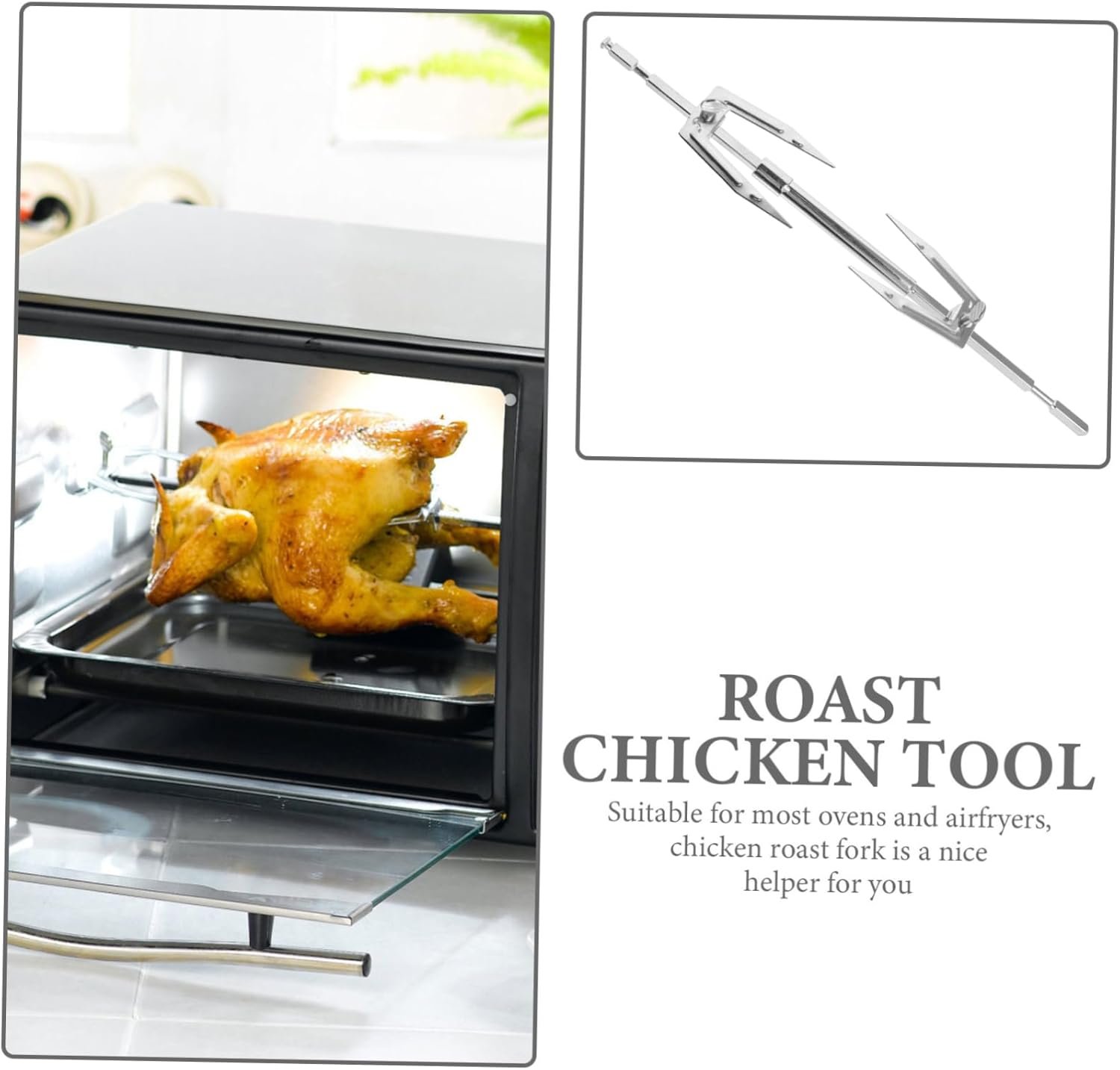 チキンロティサリーロッド:ロースターフォークこのロースターフォークには一定の長さがあります。バーベキュー、グリル、喫煙者、オーブンに使用できます