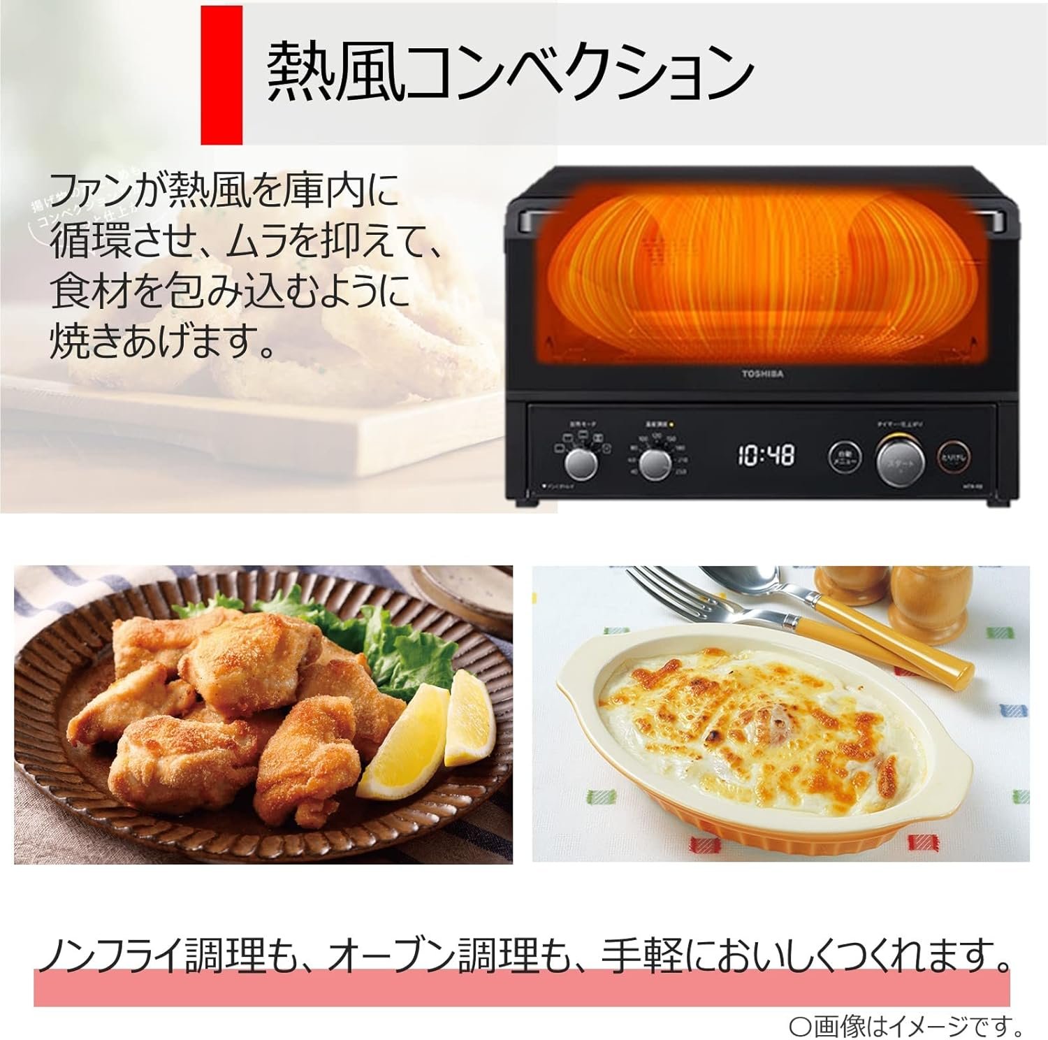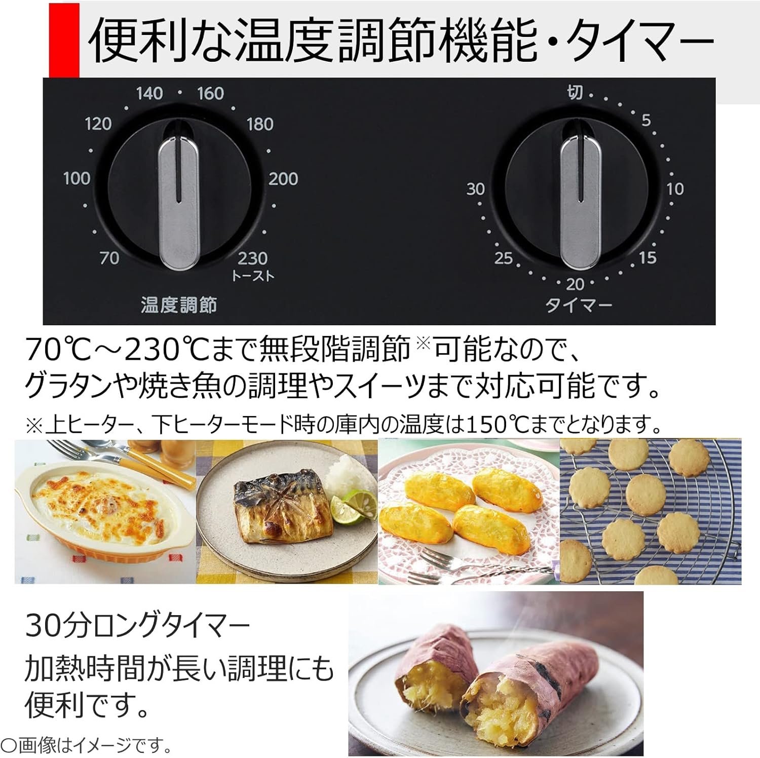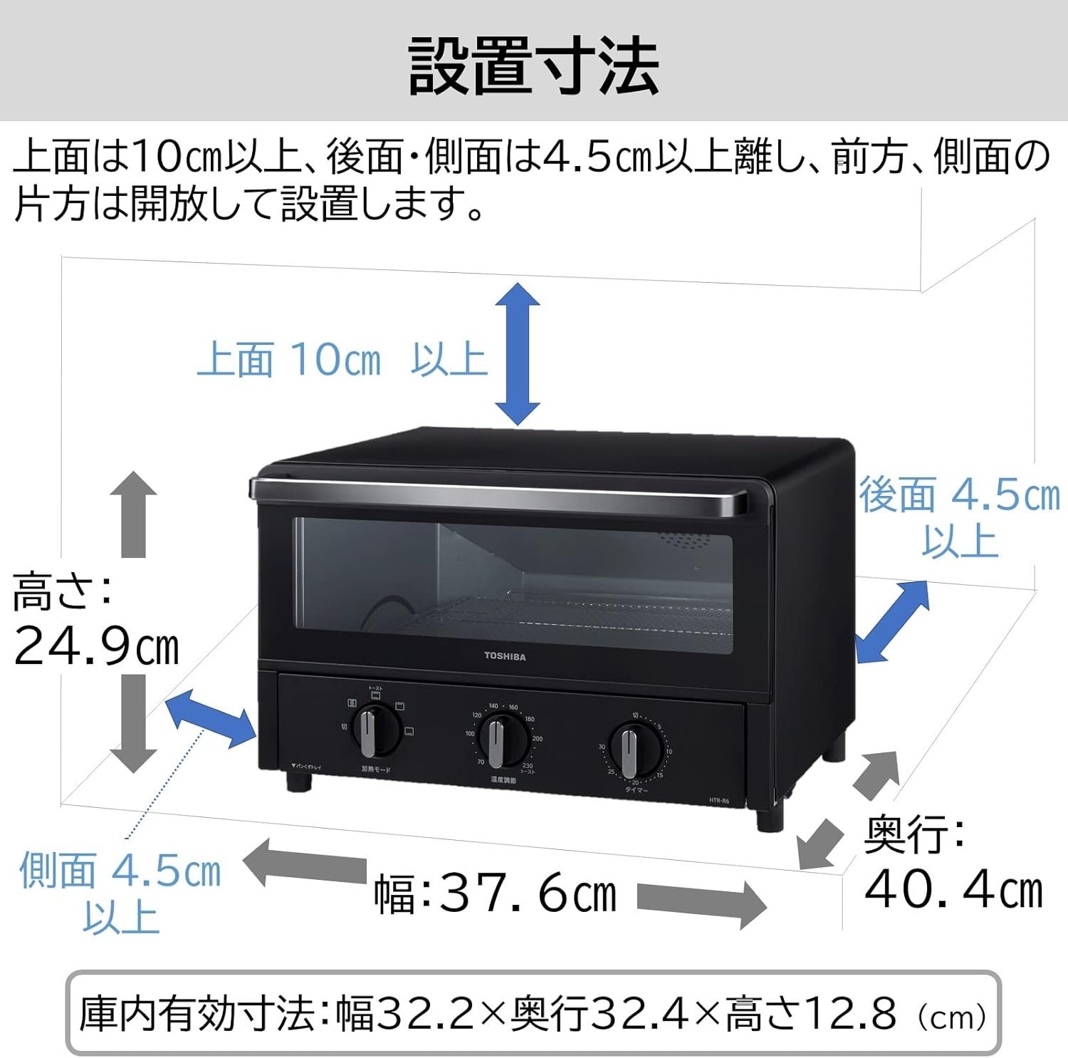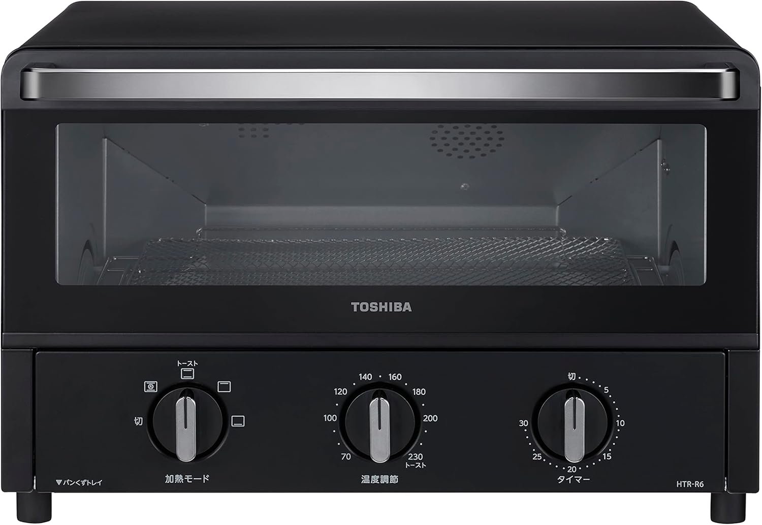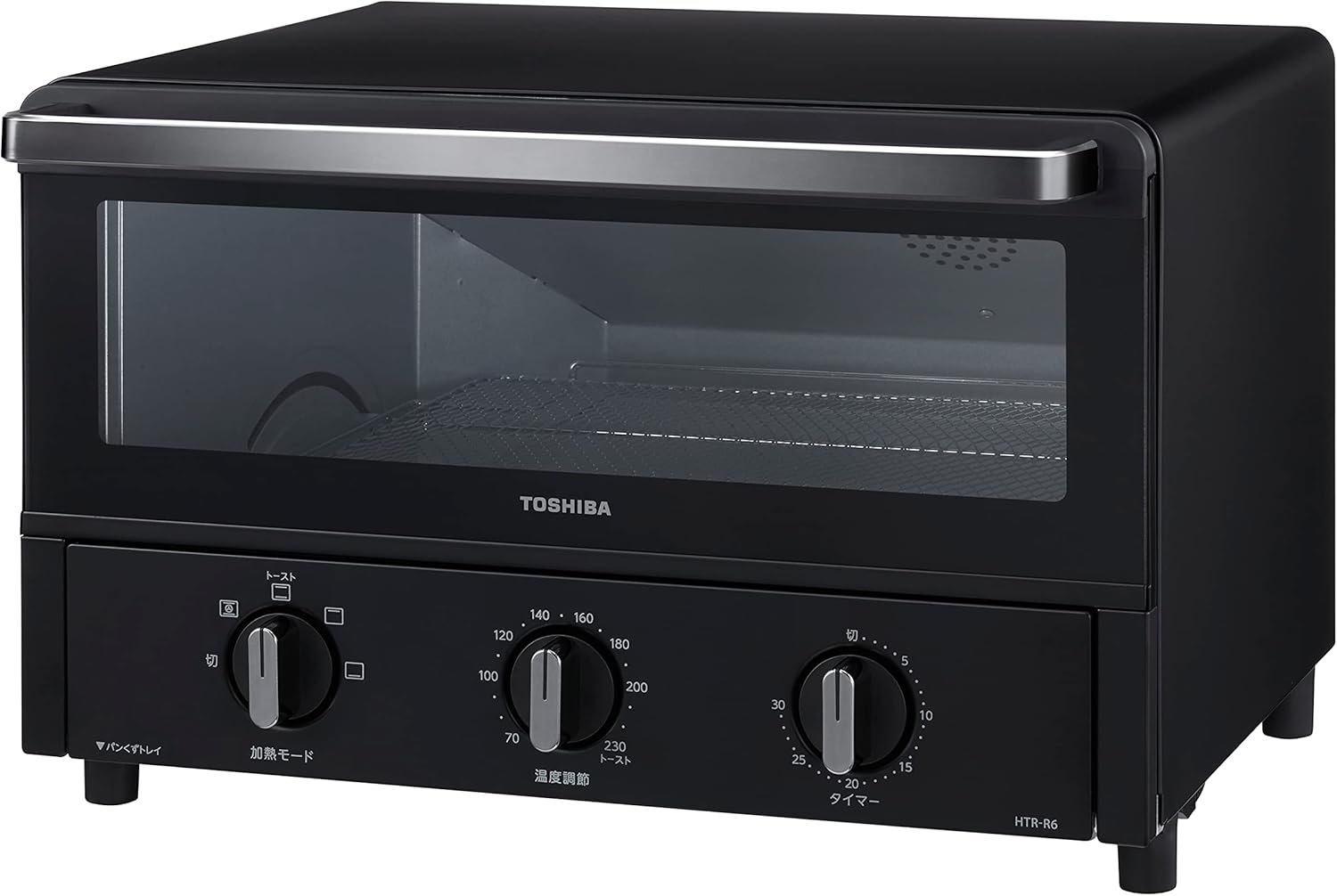 東芝HTR-R6Kトースター、オーブントースター、4ピースベーキング機能、温度制御機能、四角いプレート、30分タイマー、ブラック