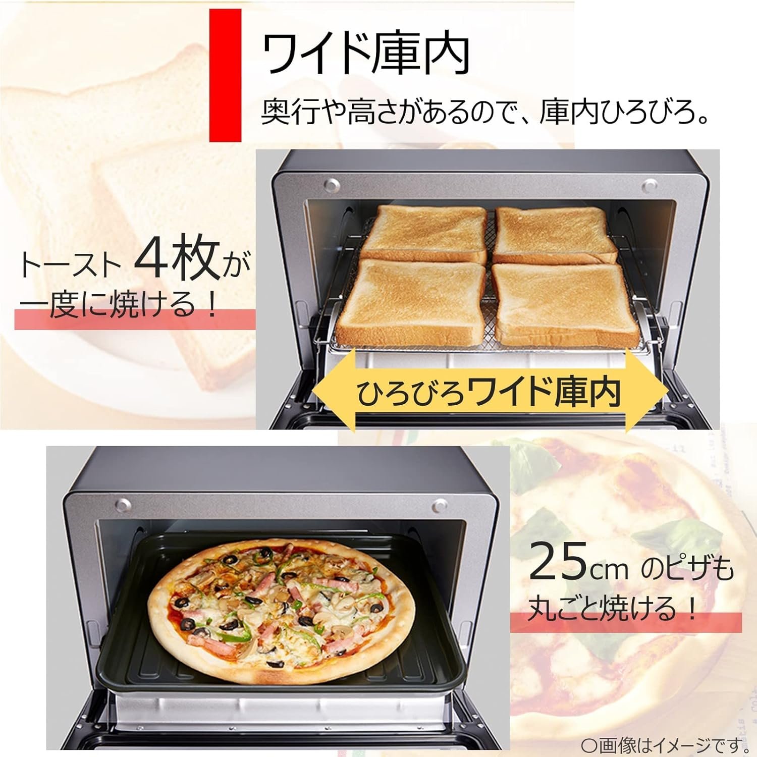 内部:一度に4つのトーストを焼くことができ、9.8インチ(25 cm)ピザ全体を焼くことができます