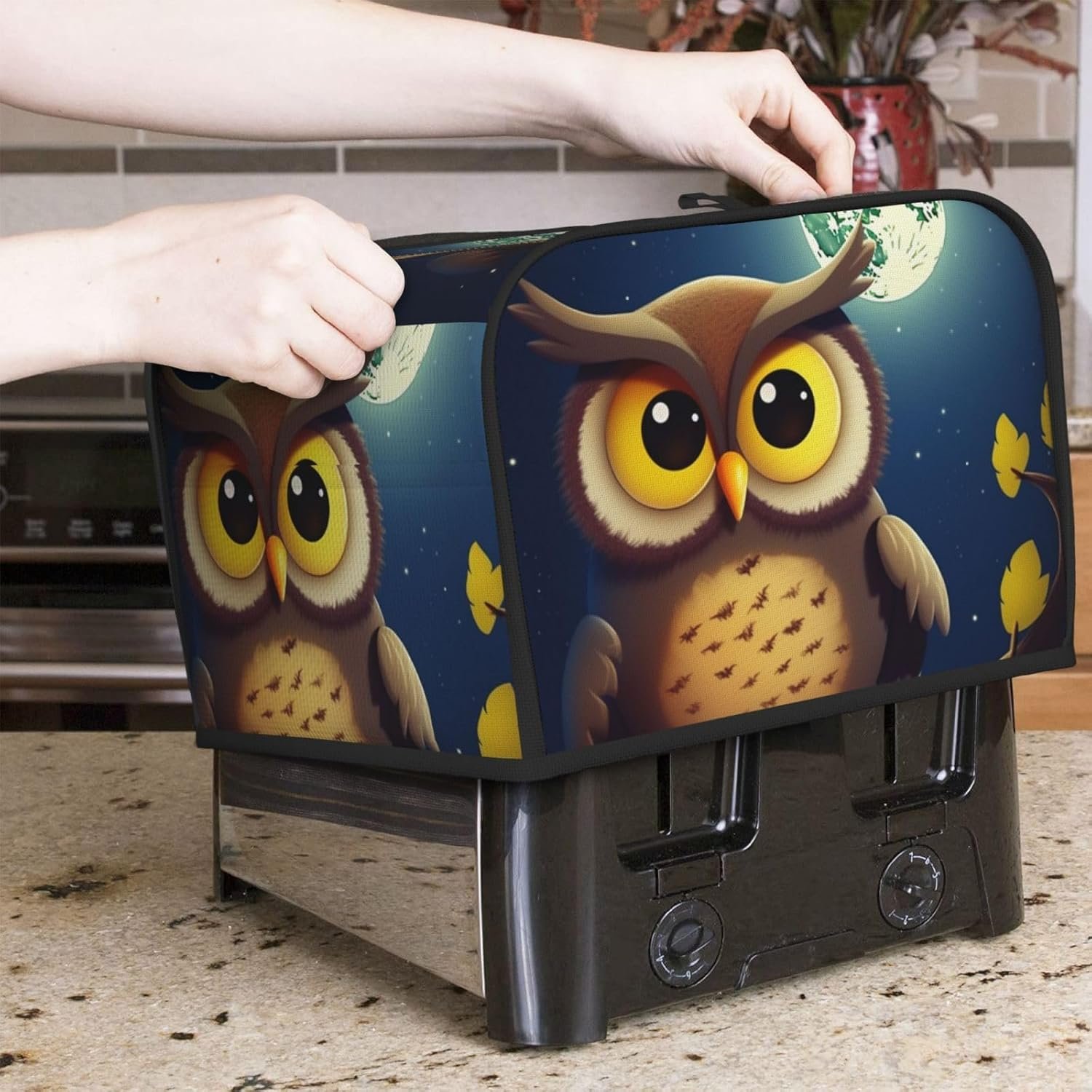 4スライストースターカバーキルトパンメーカーカバーキルトパンメーカーカバーフクロウとイエロームーントースターダストカバーフクロウとイエロームーントースターダストカバー