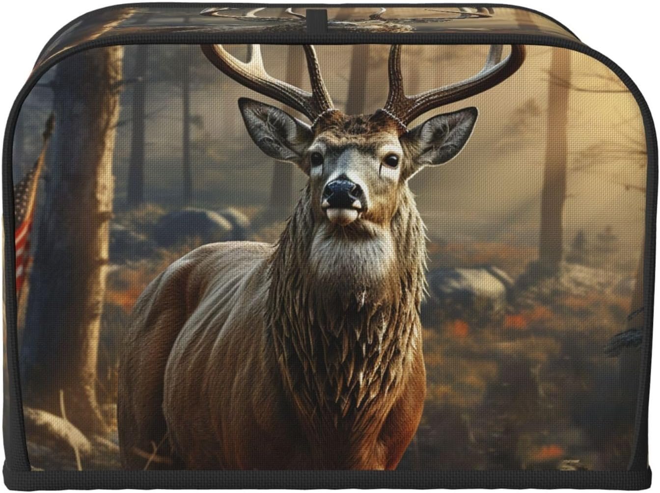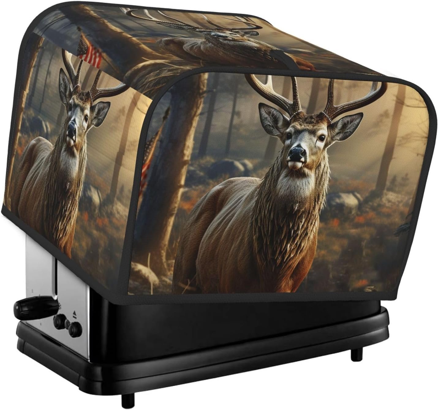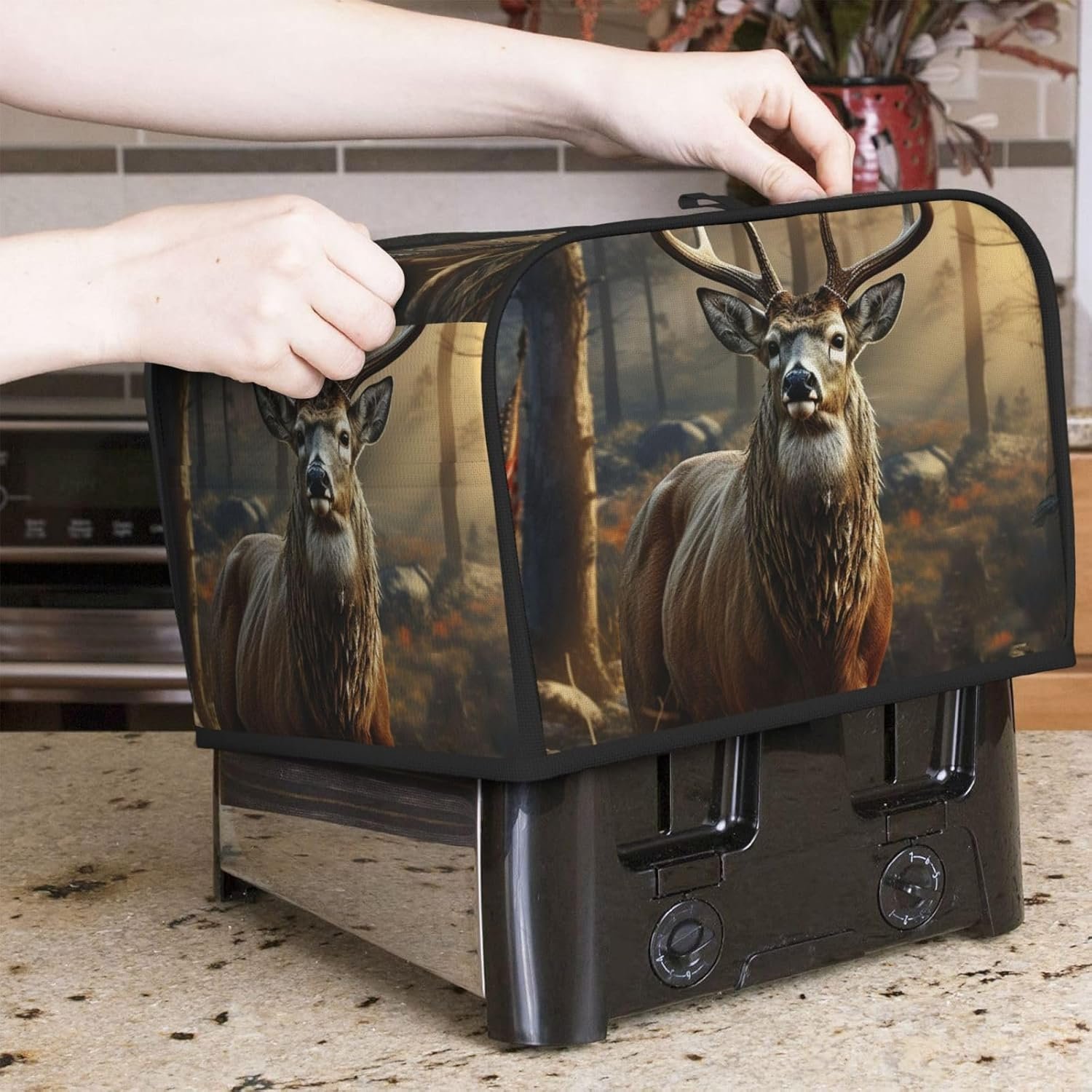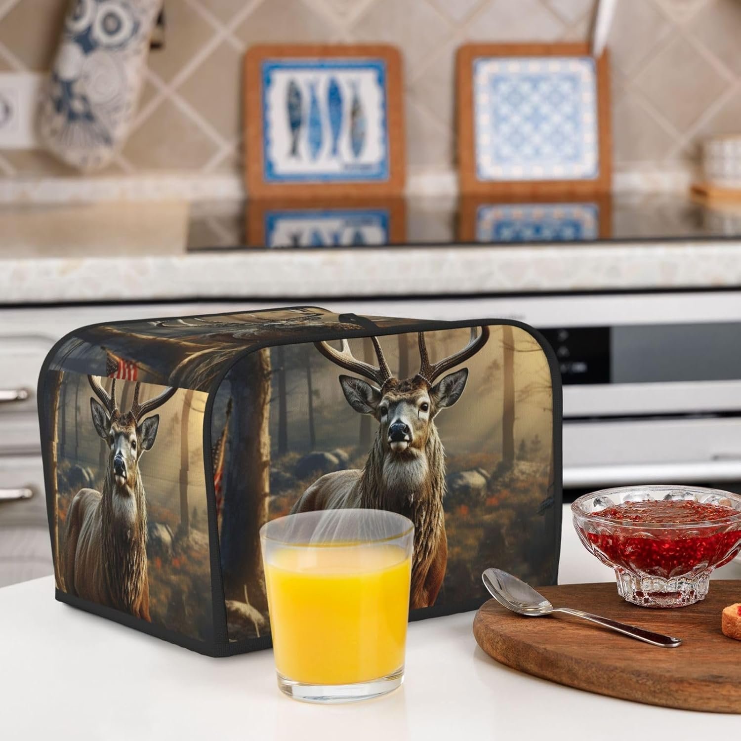 4 スライストースターカバー、キルトパンメーカーカバー、ハンドル付き小型家電カバー、鹿狩りシーズントースターダストカバー、ホームテーブル、キッチン装飾用。