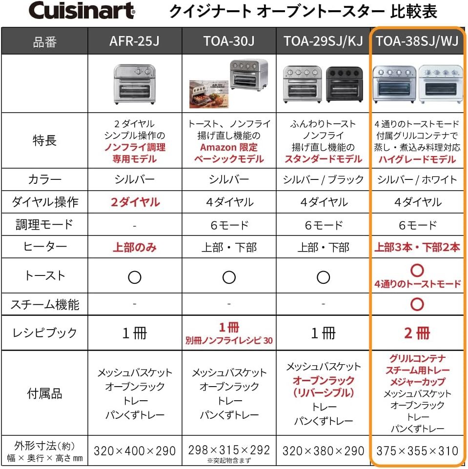 CUISINART TOA-38SJノンフリードオーブントースター、4プレートグリル、冷凍、トースト、4ダイヤル、シルバー