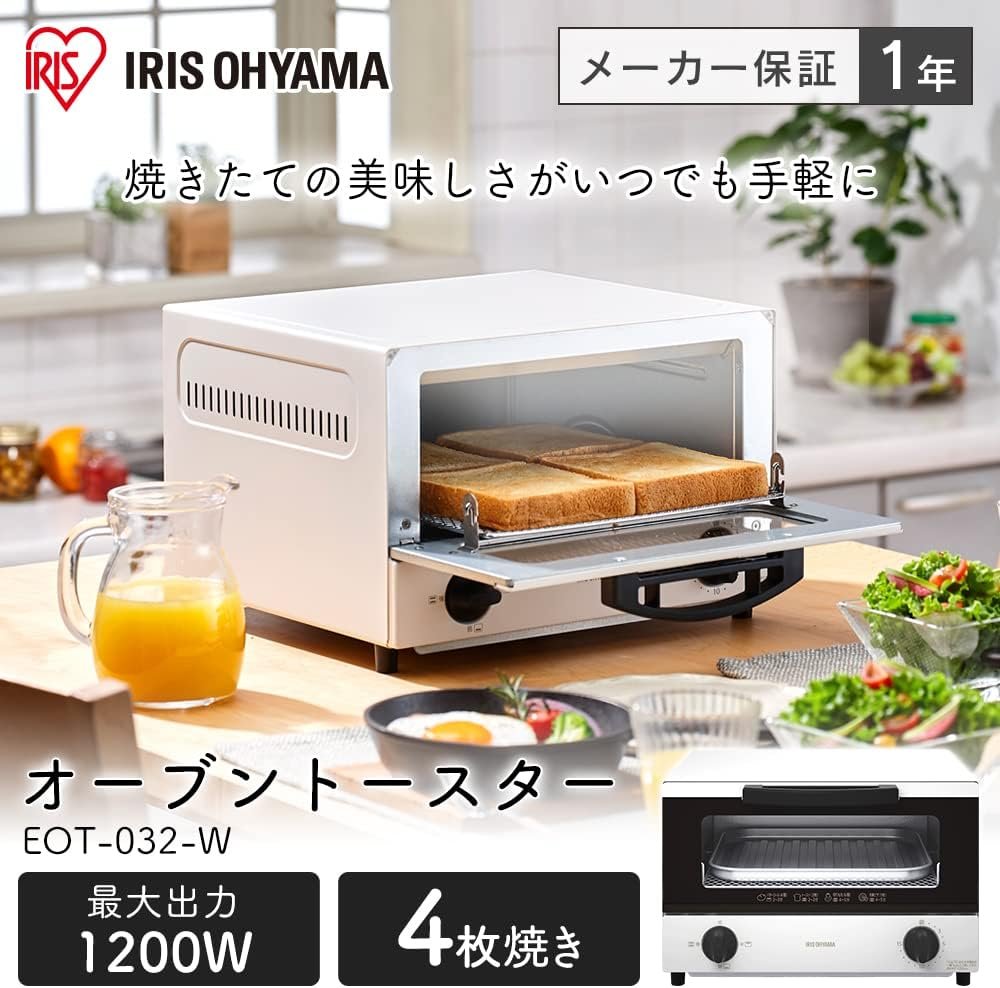 Iris Ohyama EOT-032-Wトースターオーブントースター、4プレート、1200W、タイマー機能、白