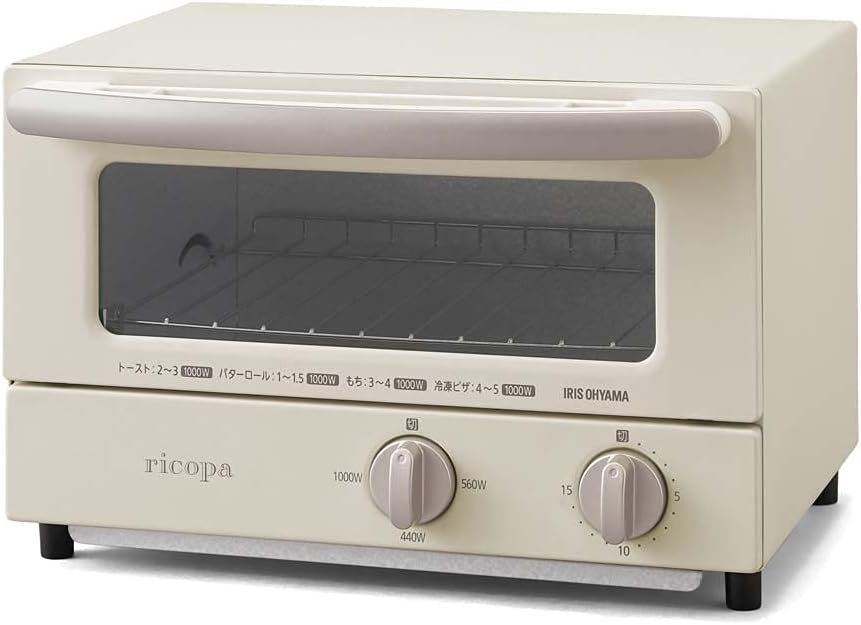 Iris Ohyama EOT-R021-WC TOASTER OVEN 2ピースバーナー、3レベルのスイッチング、タイマー設定機能、簡単なケア、スライディングオープンドア、リコパ、白い象牙
