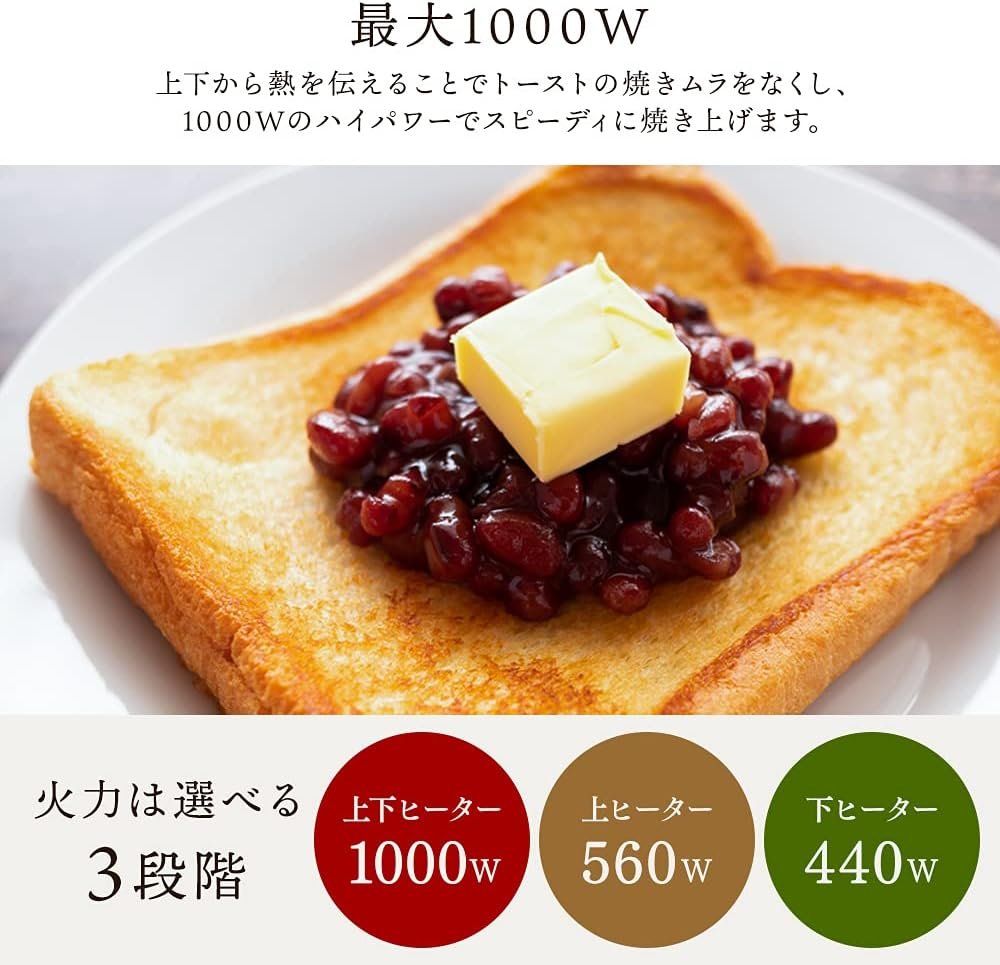 上部と下部から熱を移すことにより、トーストには不均一なベーキングがなく、1000 Wの高出力で素早く焼くことができます。