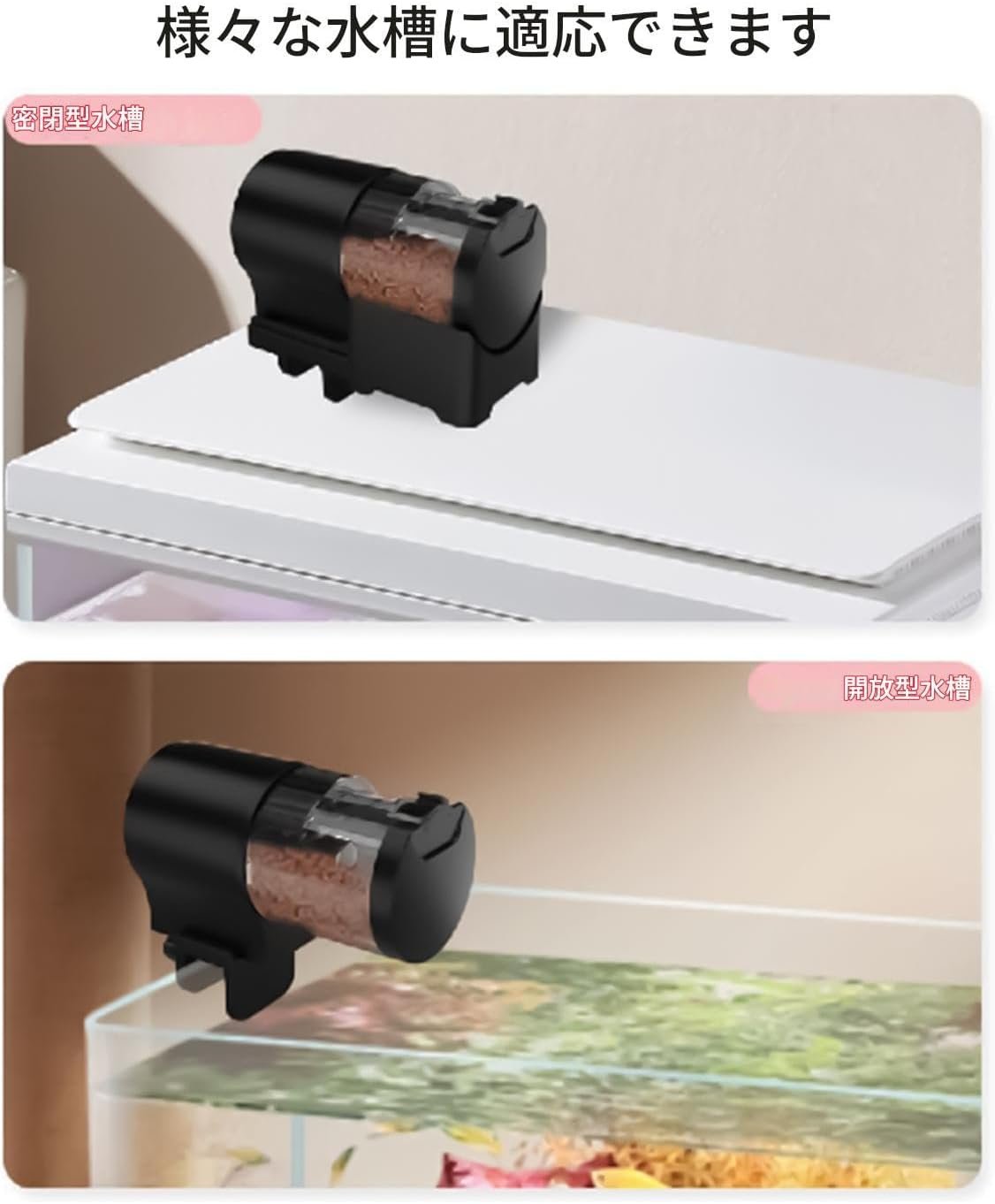取り付けが簡単:配線が必要ない水族館の端にスナップします。すべてのユーザー向けの3段階の手順をクリアする自動魚のフィーダーの信頼できるインストールを保証します