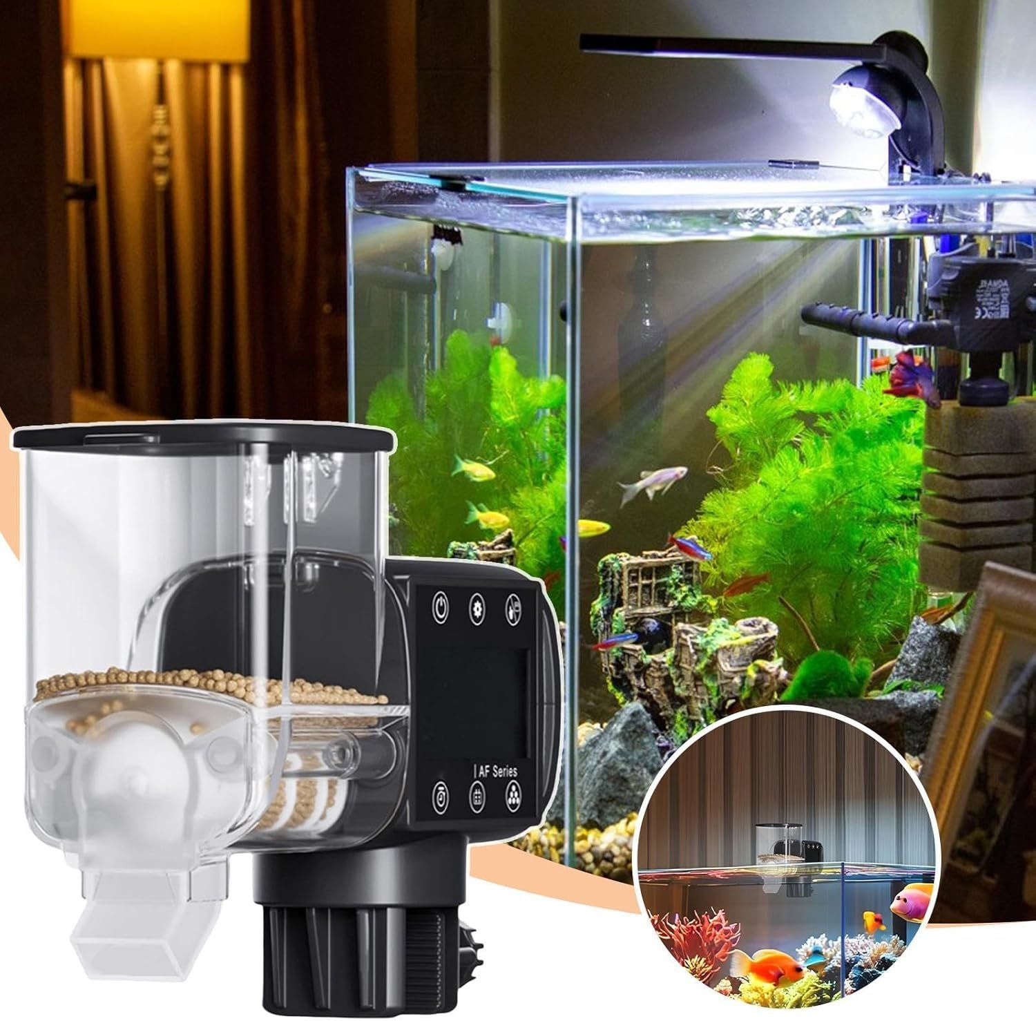 複数の計画フィード:正確な部分は、過剰な給餌を防ぐために1日あたり複数の給餌を提供します。忙しい所有者に理想的になるように設計されているため、アクアリウムケアを簡単かつ効果的に管理できます。健康な魚の食事を促進するための重要な機能