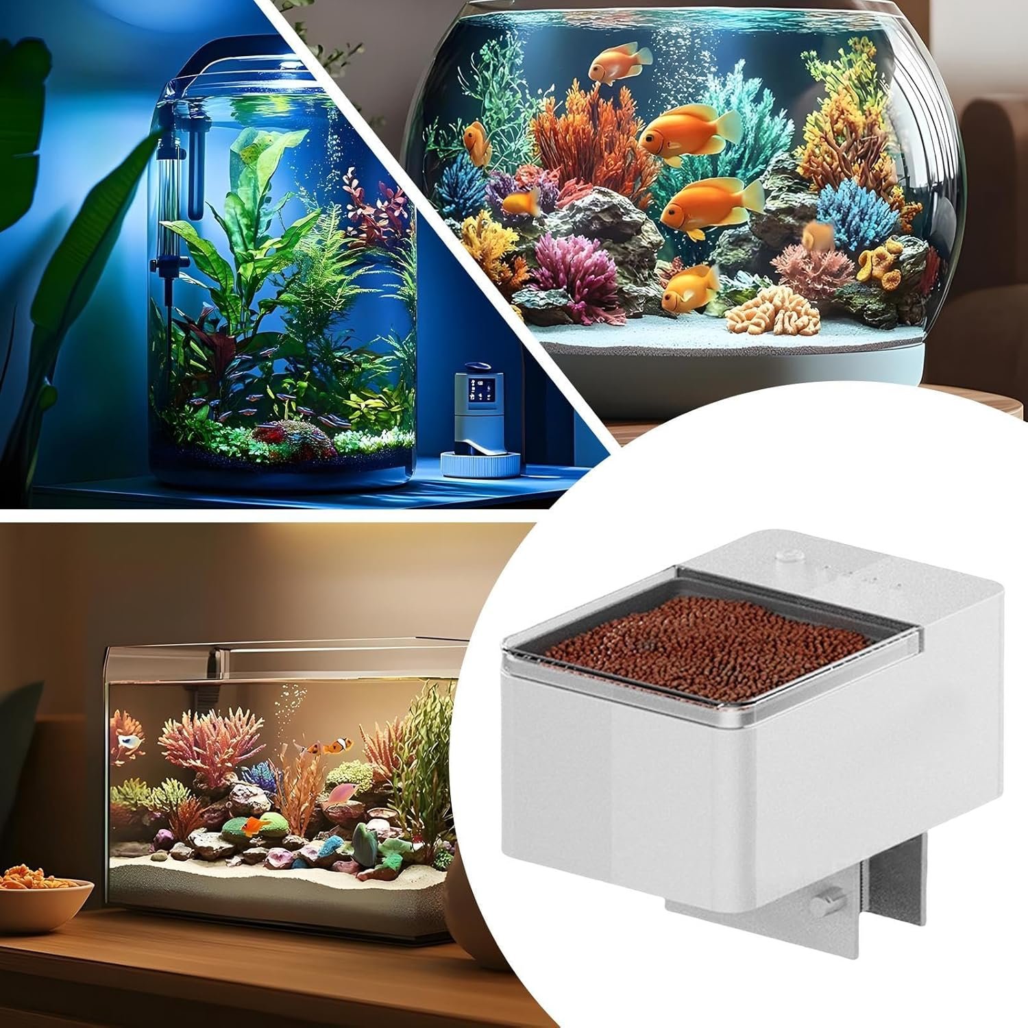 マルチシェイプサポート:ペレット、フレーク、パウダーを含む3種類すべての餌をサポートします。小さな熱帯魚から金魚まで、さまざまな水生生物生活の食事ニーズを満たすための自動給餌システム。水族館環境の柔軟な給餌設定、および粉末餌に粉砕防止設計を使用しています