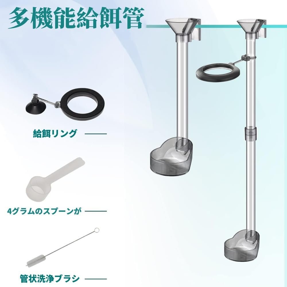 [Product Details] 魚とエビの給餌セットには、2つの給餌チューブ、1つの給餌リング、1つのチューブラークリーニングブラシ、1つの4グラムスプーンが付属しています。 2つの魚のチューブは個別に接続または使用でき、ニーズに応じて自由に調整できます