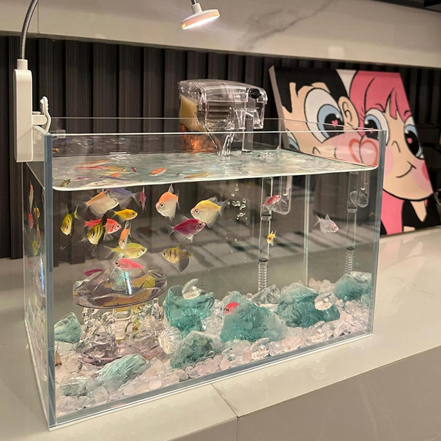 水族館の風景、テーブルの装飾、家族や同僚へのギフトに最適です。水槽を簡単にアップグレード!