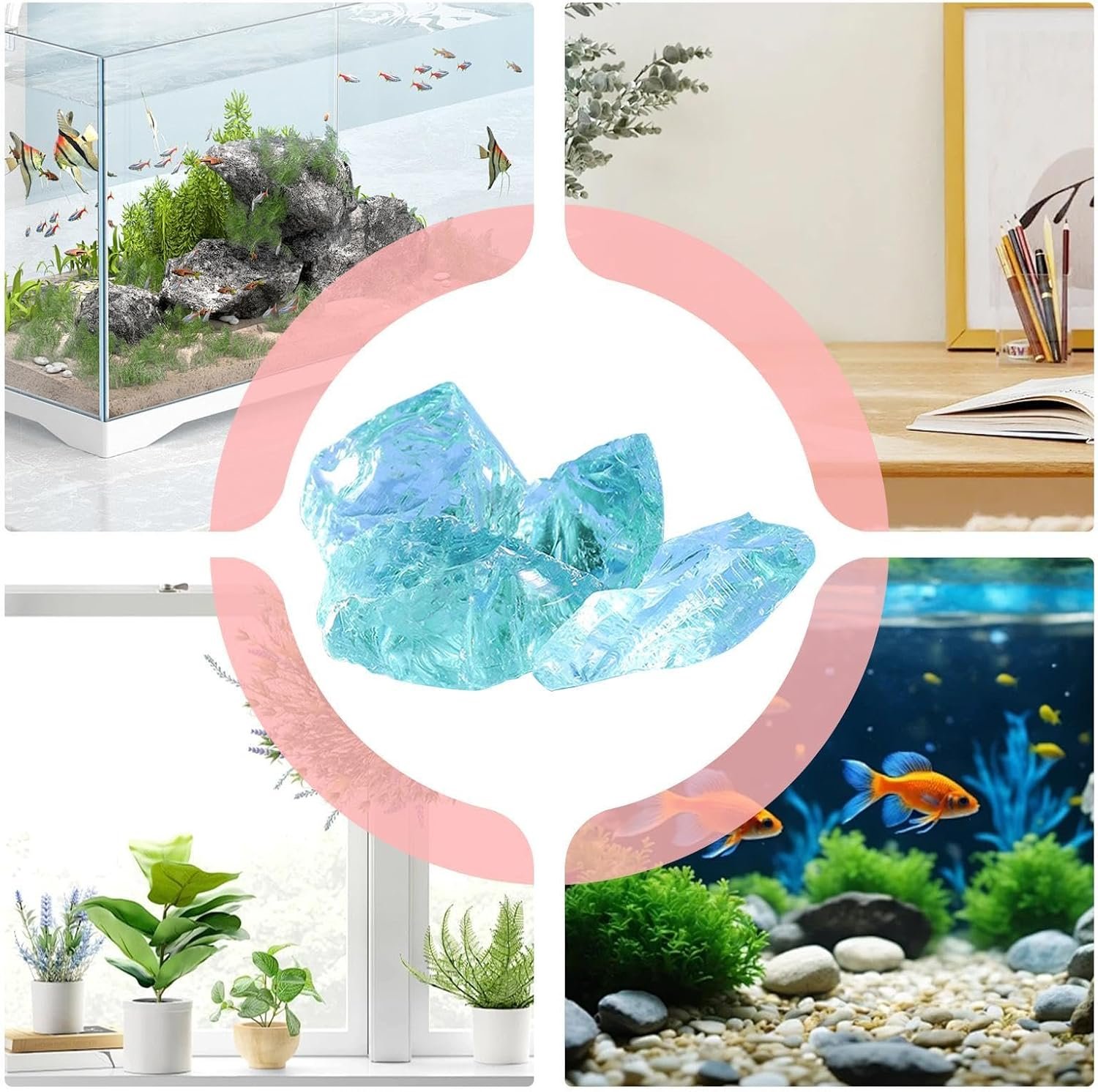 小型水族館の装飾 -水族館の装飾 -水族館の装飾|クリスタルストーン水族館の装飾| 金魚鉢、センターピース、水槽装飾、花瓶、水槽用石飾り、卓上