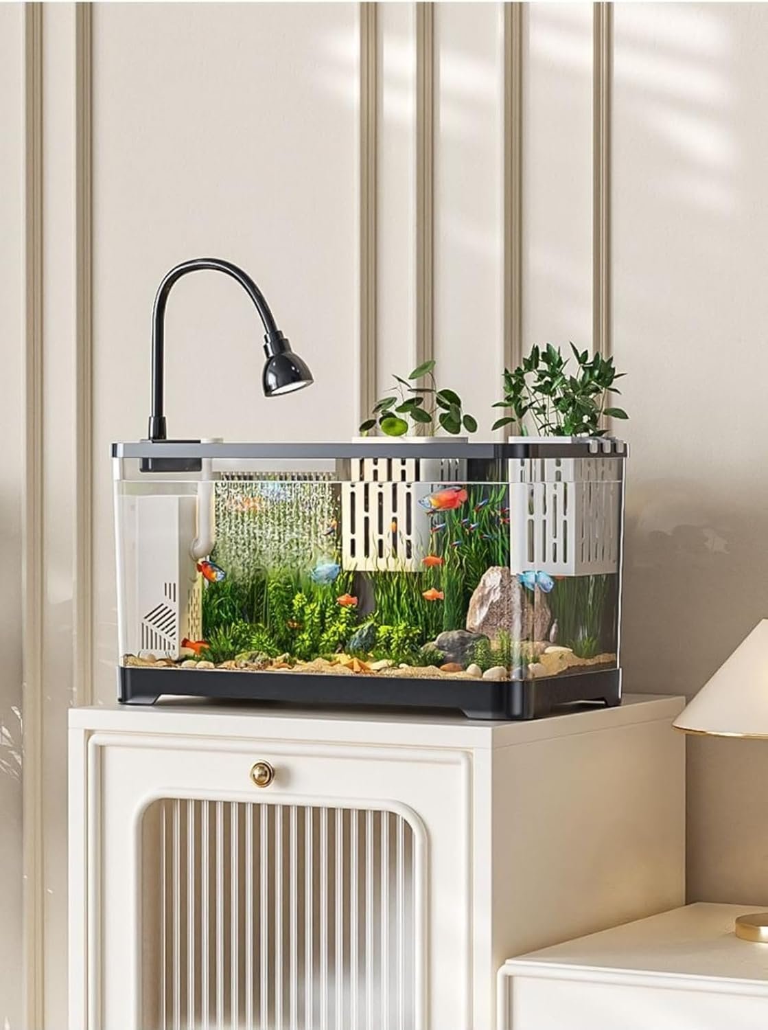 5.水族館には、魚の餌や小さな装飾品を整理するための追加の貯蔵スペースがあります。毎日のルーチンを維持するのは簡単です