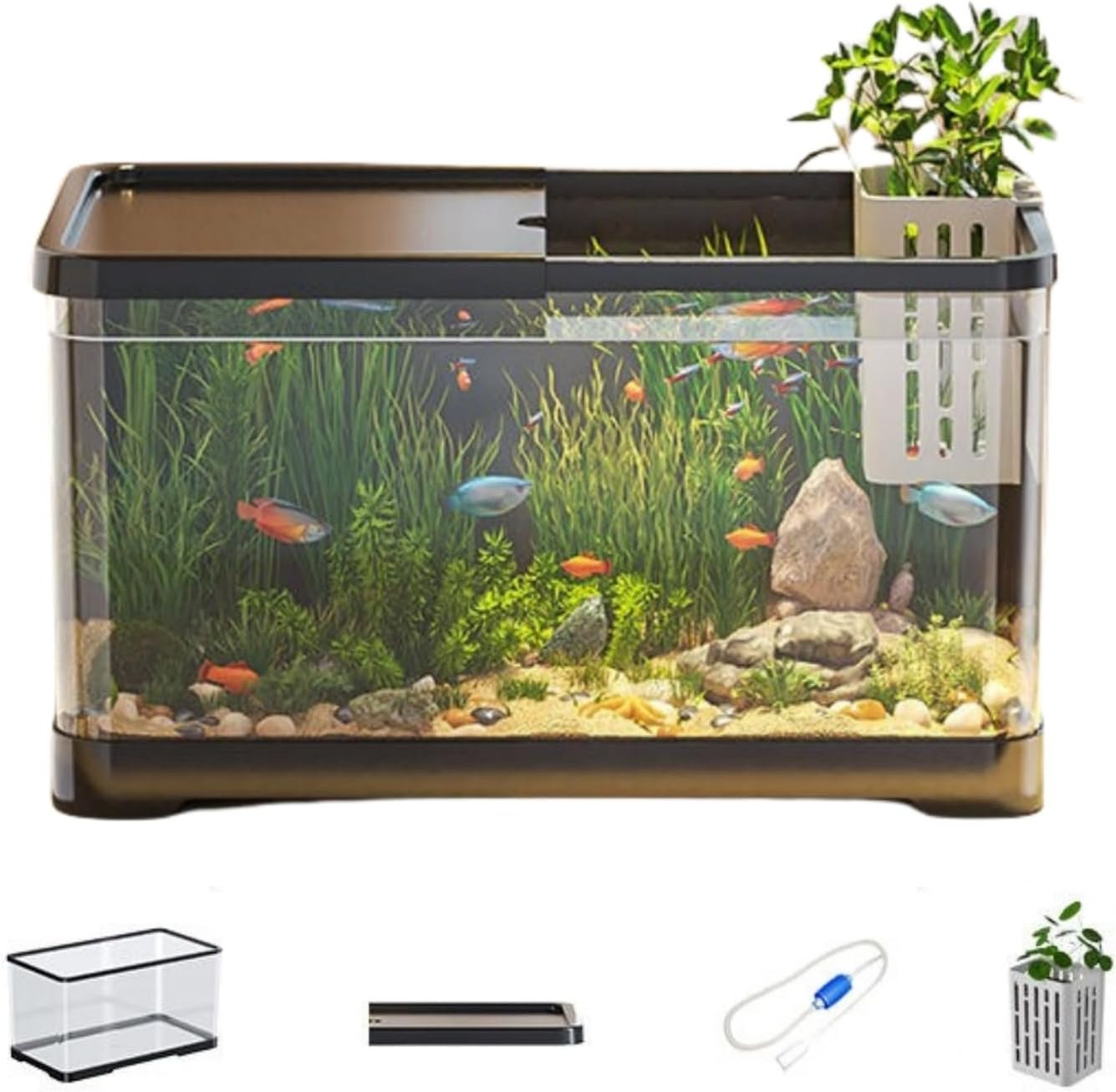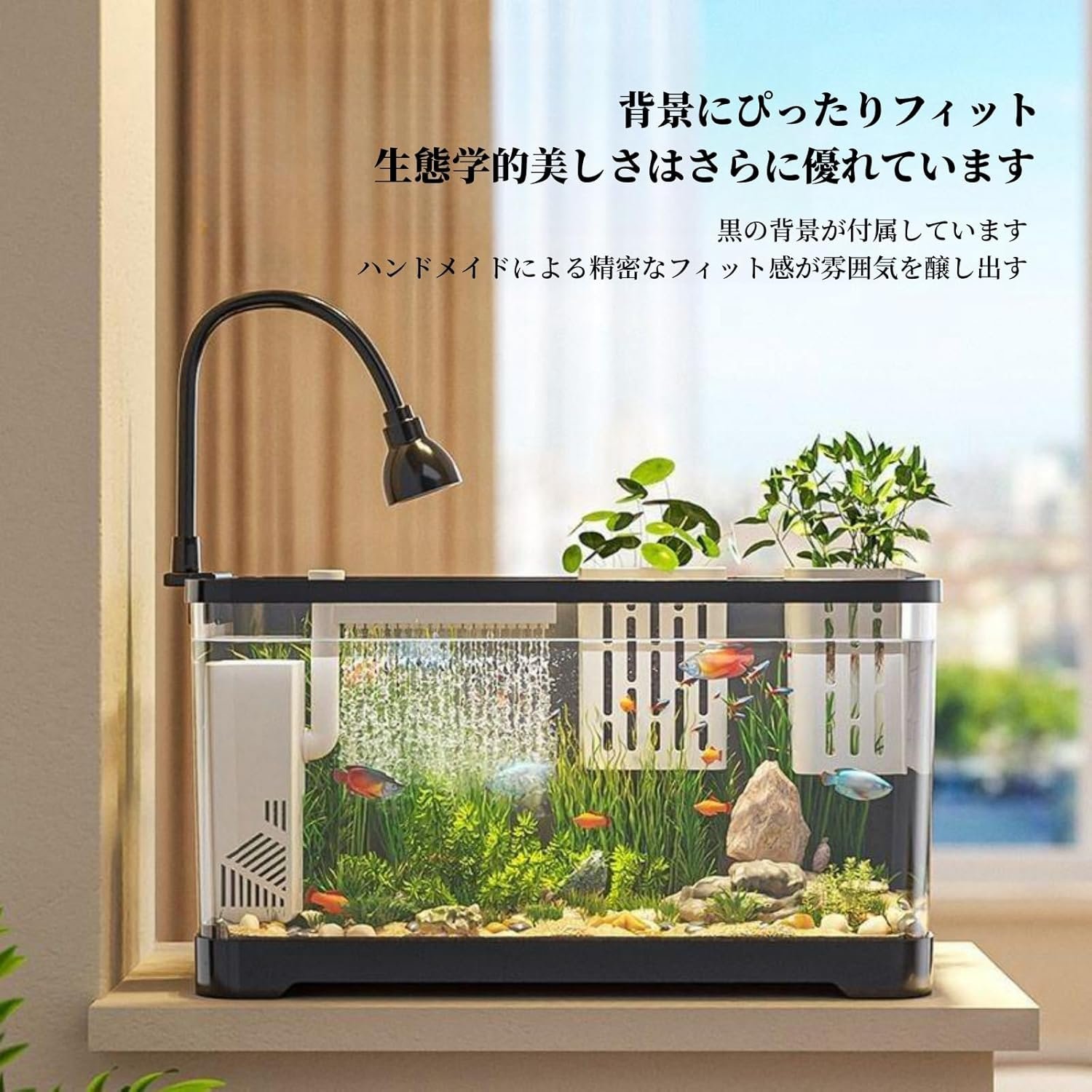4.スマートトップカバーデザインにより、水族館の生態学的バランスを簡単に供給して維持できます。 MedkaとGoldfishを健康に保つのに最適です