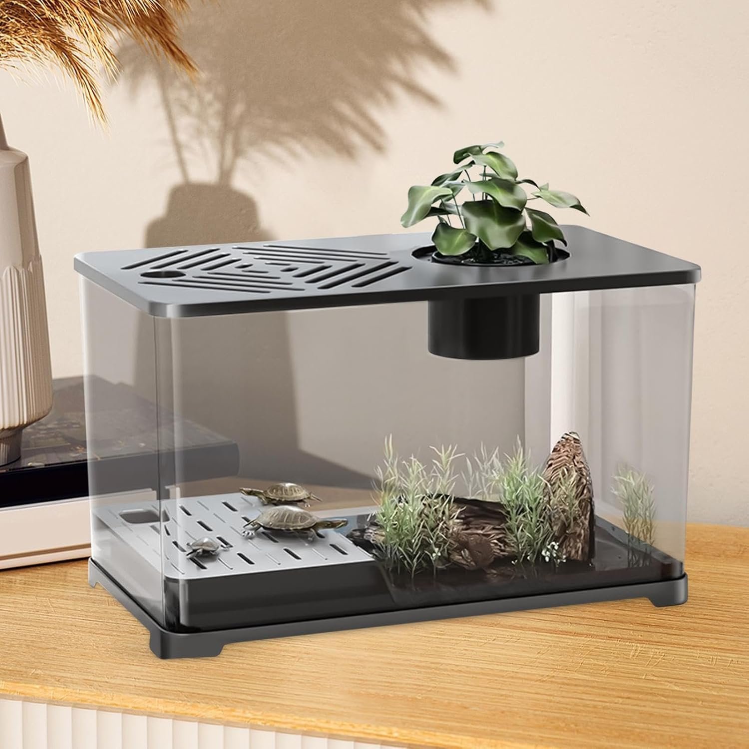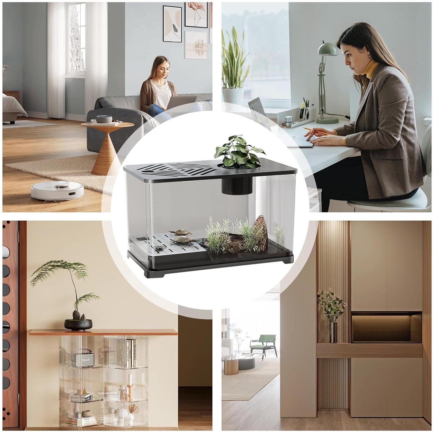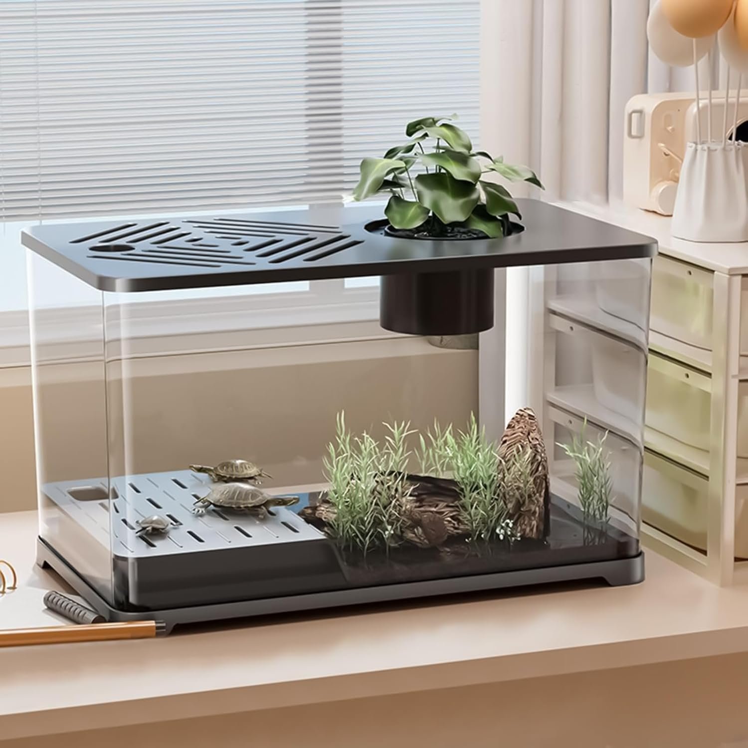 パノラマHDの明瞭さにより、このコンテナは水生植栽をサポートし、カメ、ベタ、クラゲ、グッピー、エビを快適に収容します。