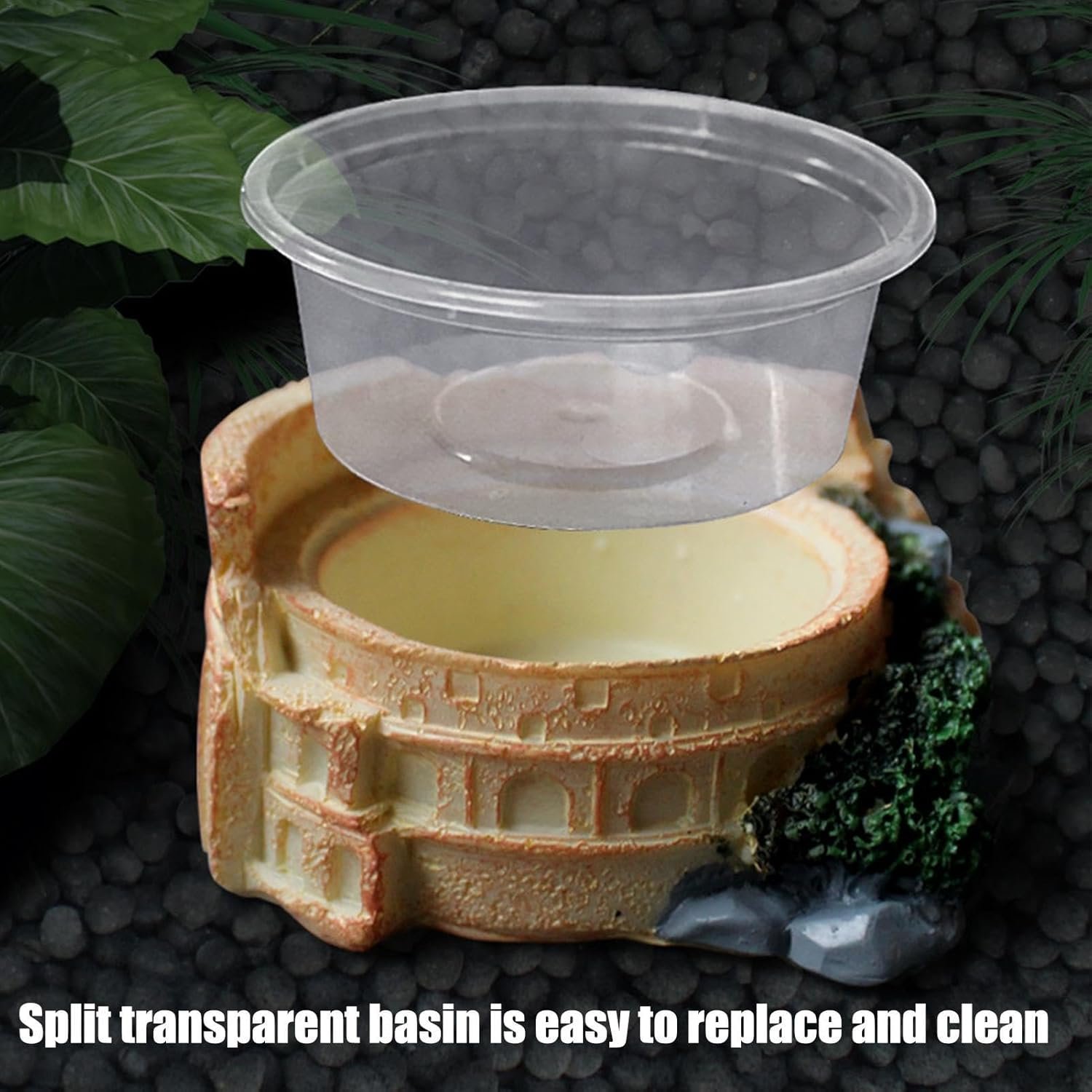 便利な可視性:この爬虫類皿の分割透明盆地で、食物と水位を簡単に追跡します。メンテナンスを強化するための簡単なデザイン