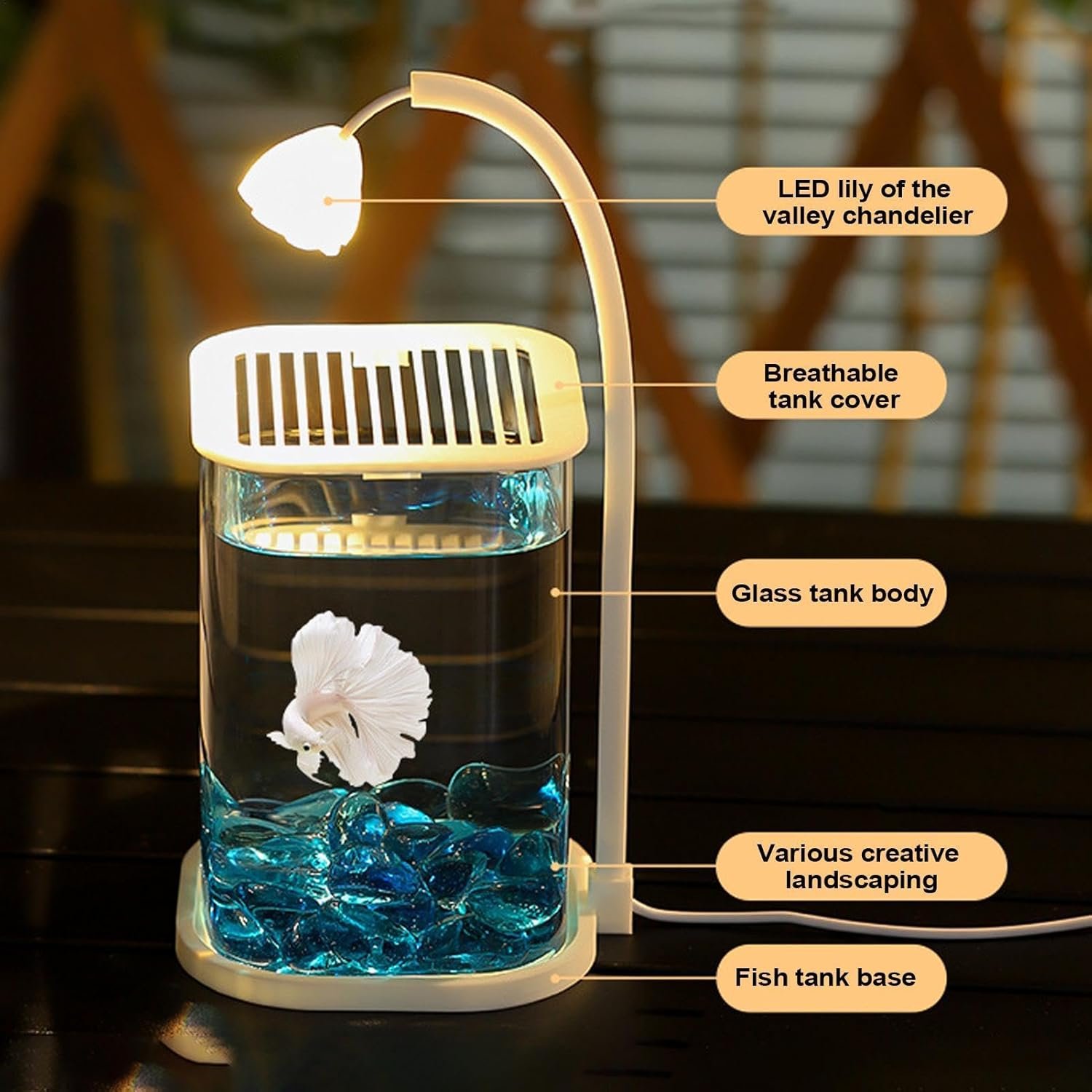 強化されたリラクゼーション:LEDライト付きの美しいガラス水族館は、オフィスや巣穴に平和な雰囲気を作り出します。夜にミノーを見て、静かな体験をお楽しみください。コンパクトなデザインと明るい照明により、メンテナンスが簡単になります