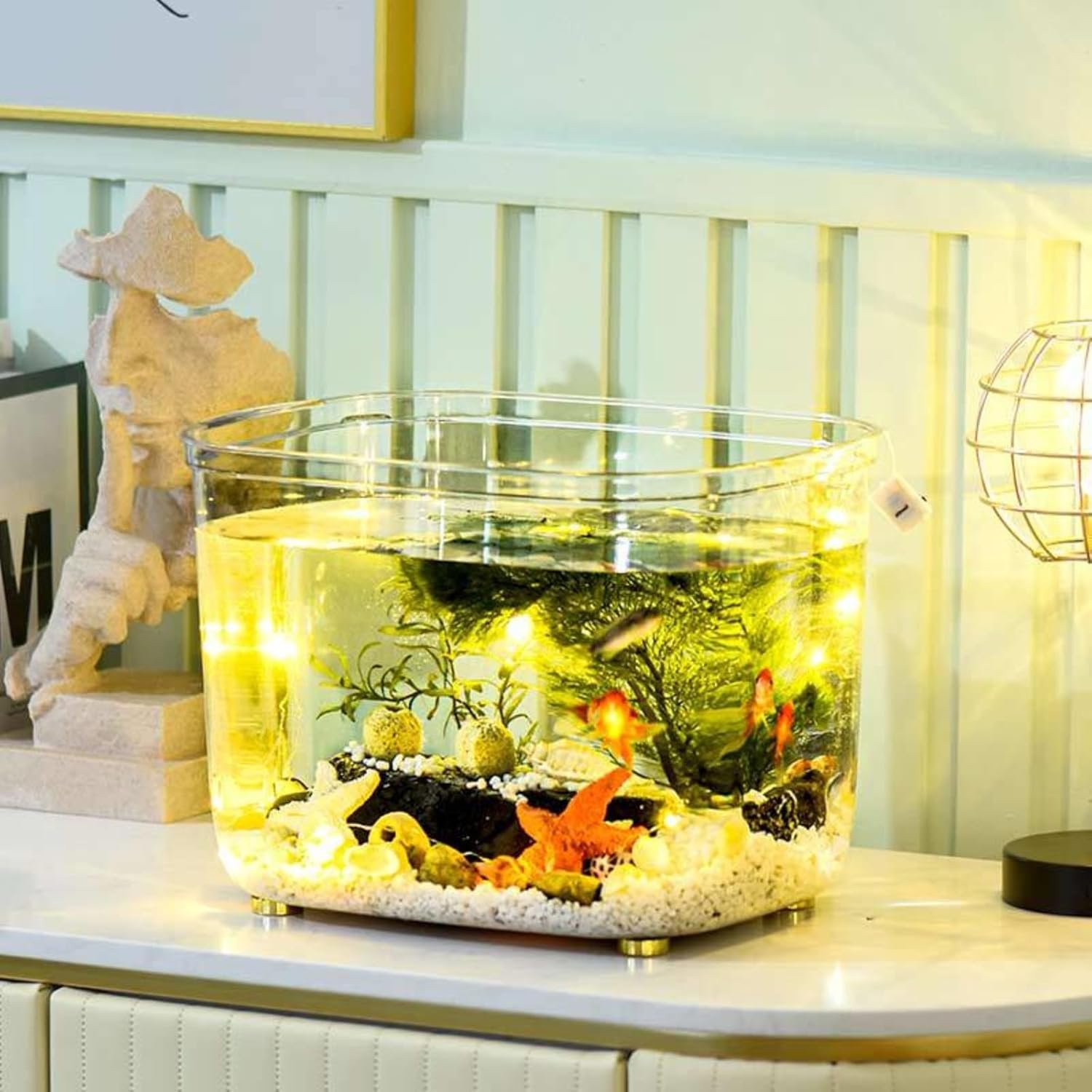 水槽透明ペットリビングルーム小型デスクトップ水族館カメタンク金魚タンク落下防止水耕景観生態タンク