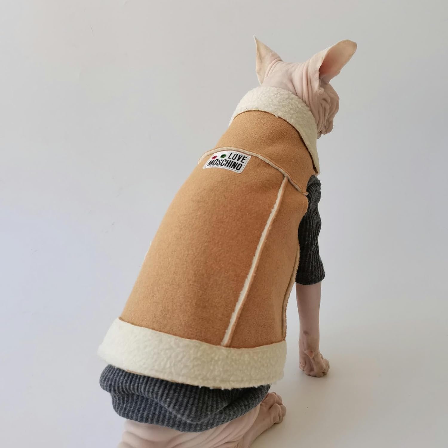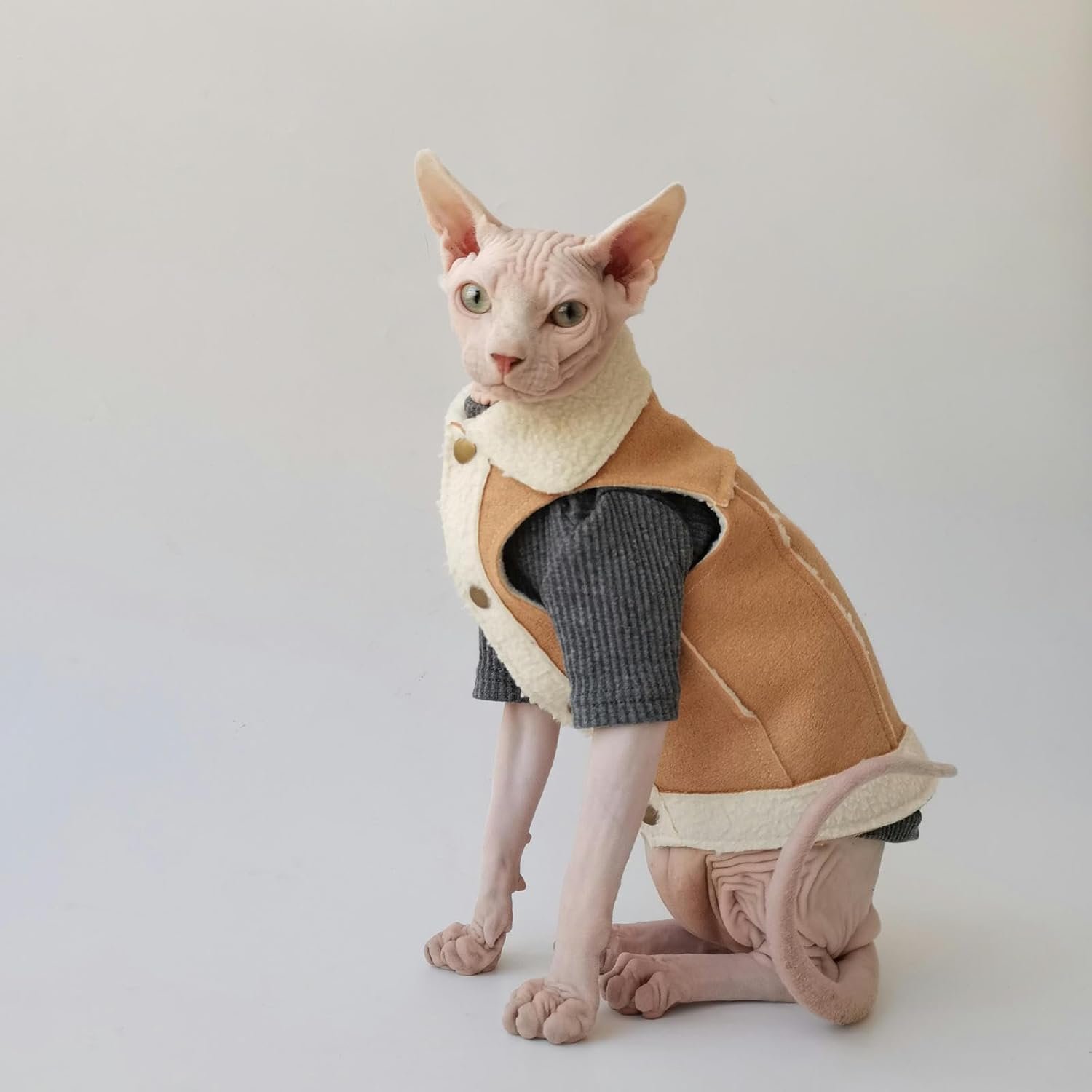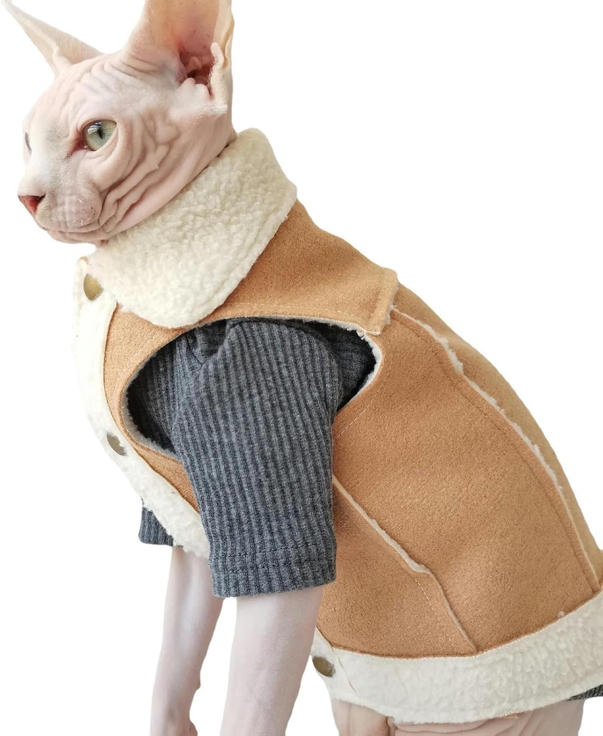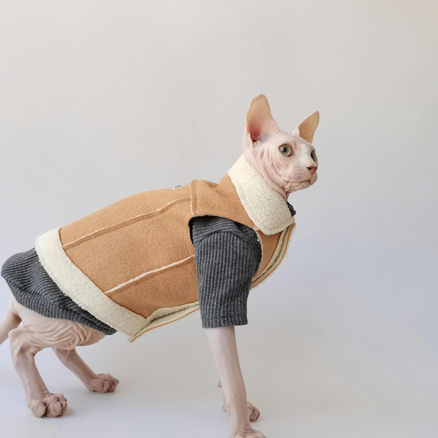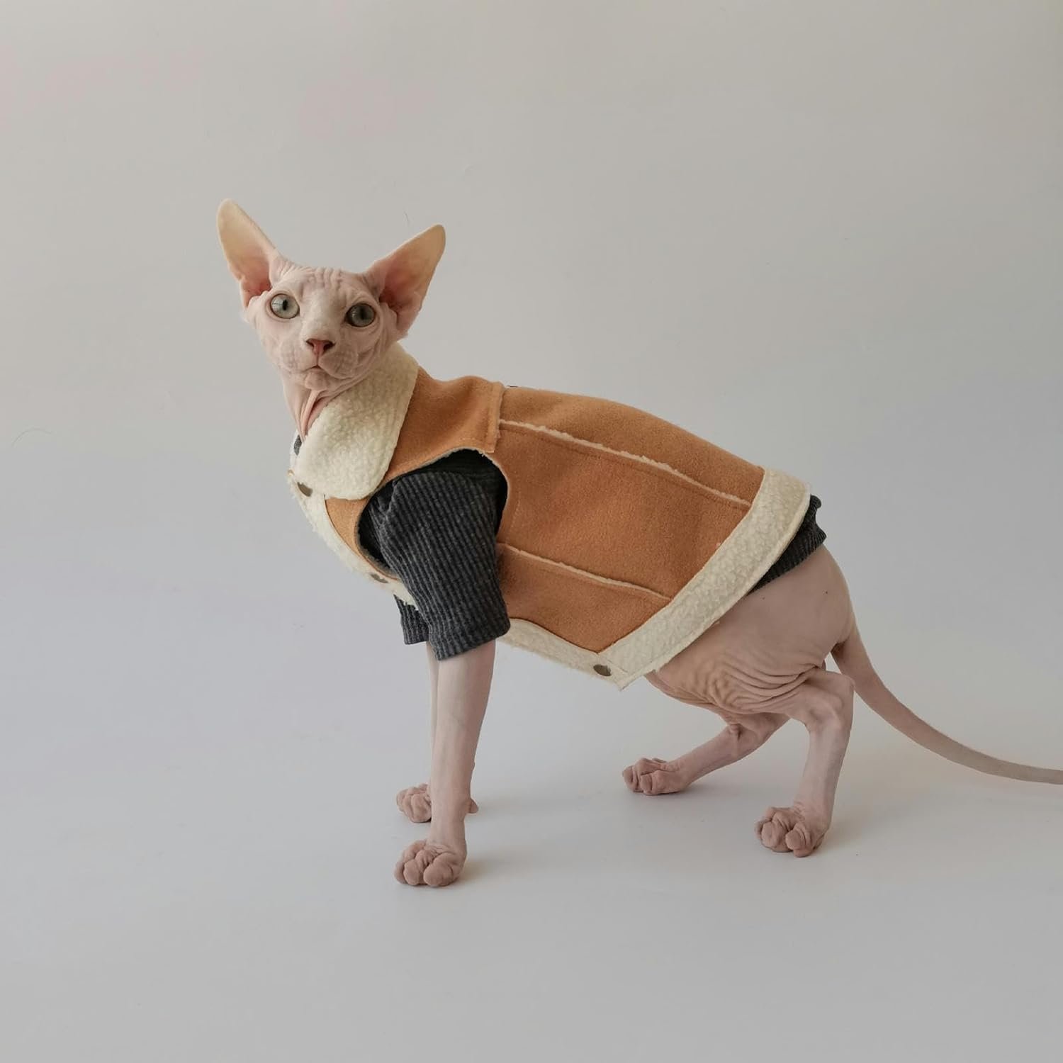 ウシアスフィンクス毛のないキャットコートベストラムウール冬の温かいペットジャケットスフィンクス、コーニッシュレックス、デボンレックス、ピーターバルドコールドウェザーキャットアパレル