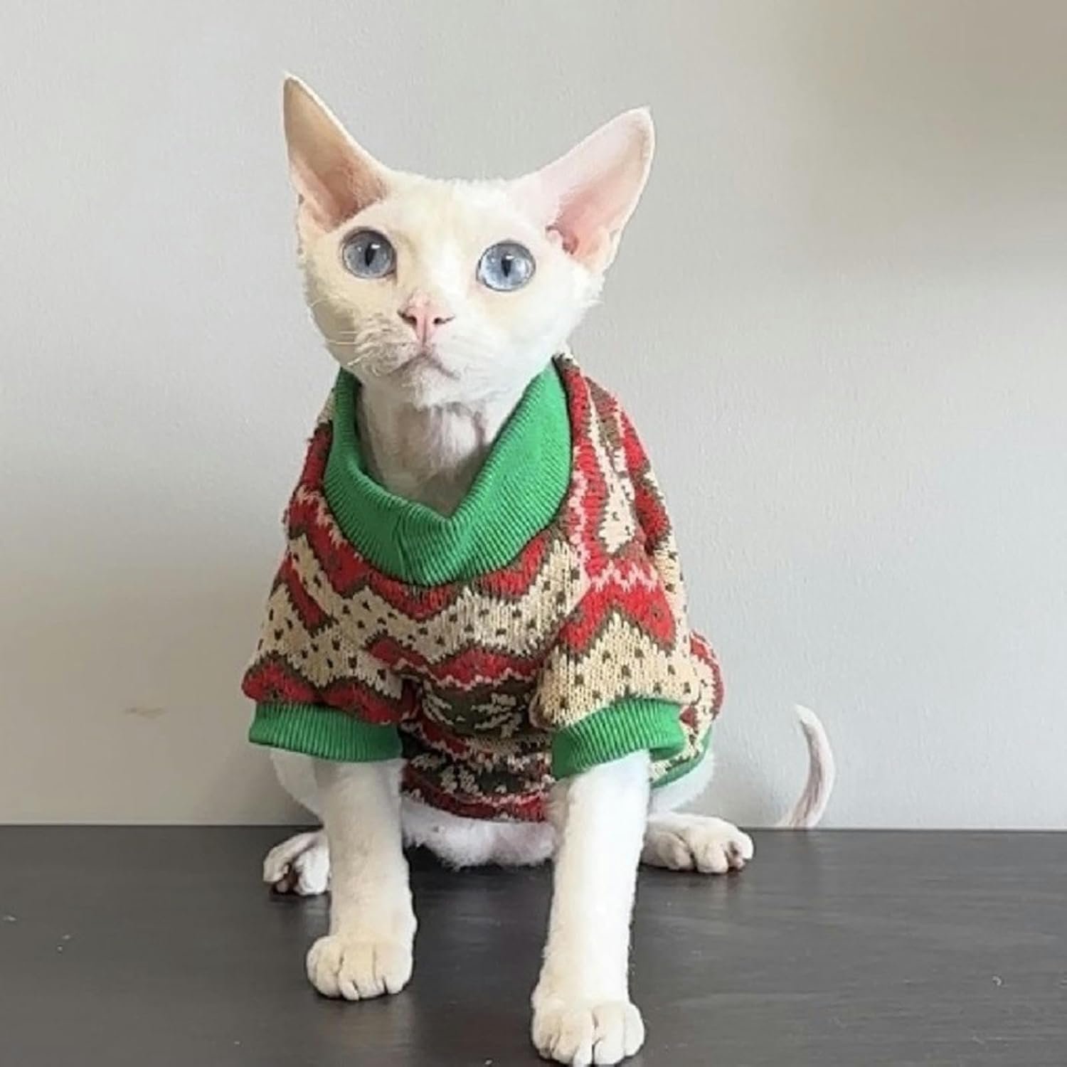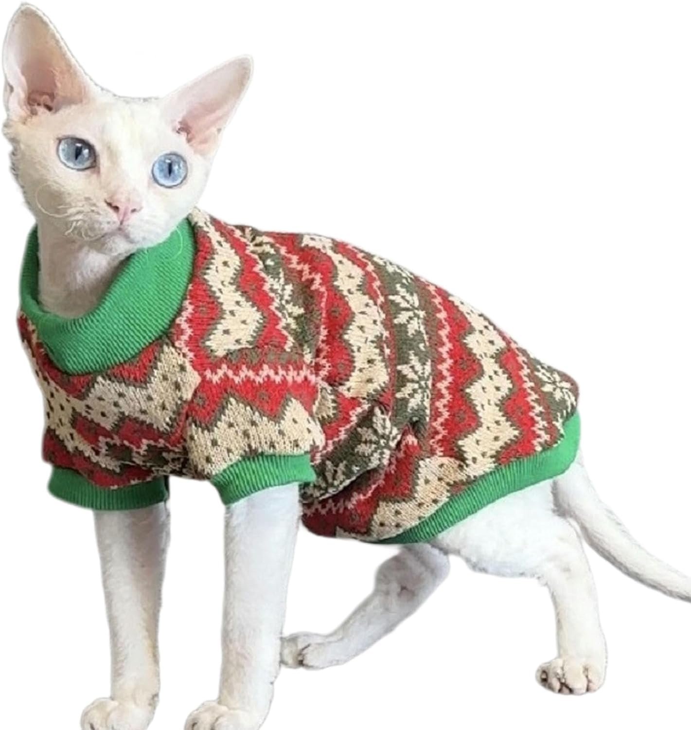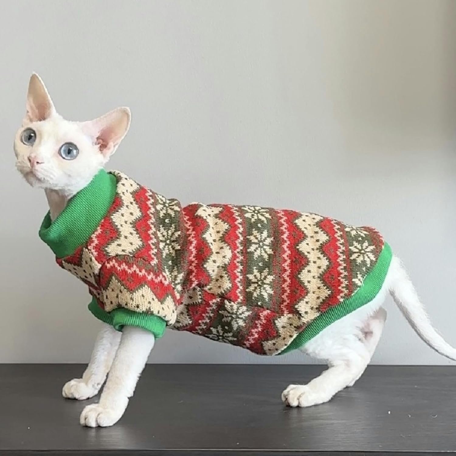 ウシアスフィンクス猫の服クリスマス毛のない猫のセーター、かわいいニット猫の服、秋と冬、ペット、暖かい、プルオーバー、セーター、子猫シャツ、寒い天気、小さな犬のアパレル