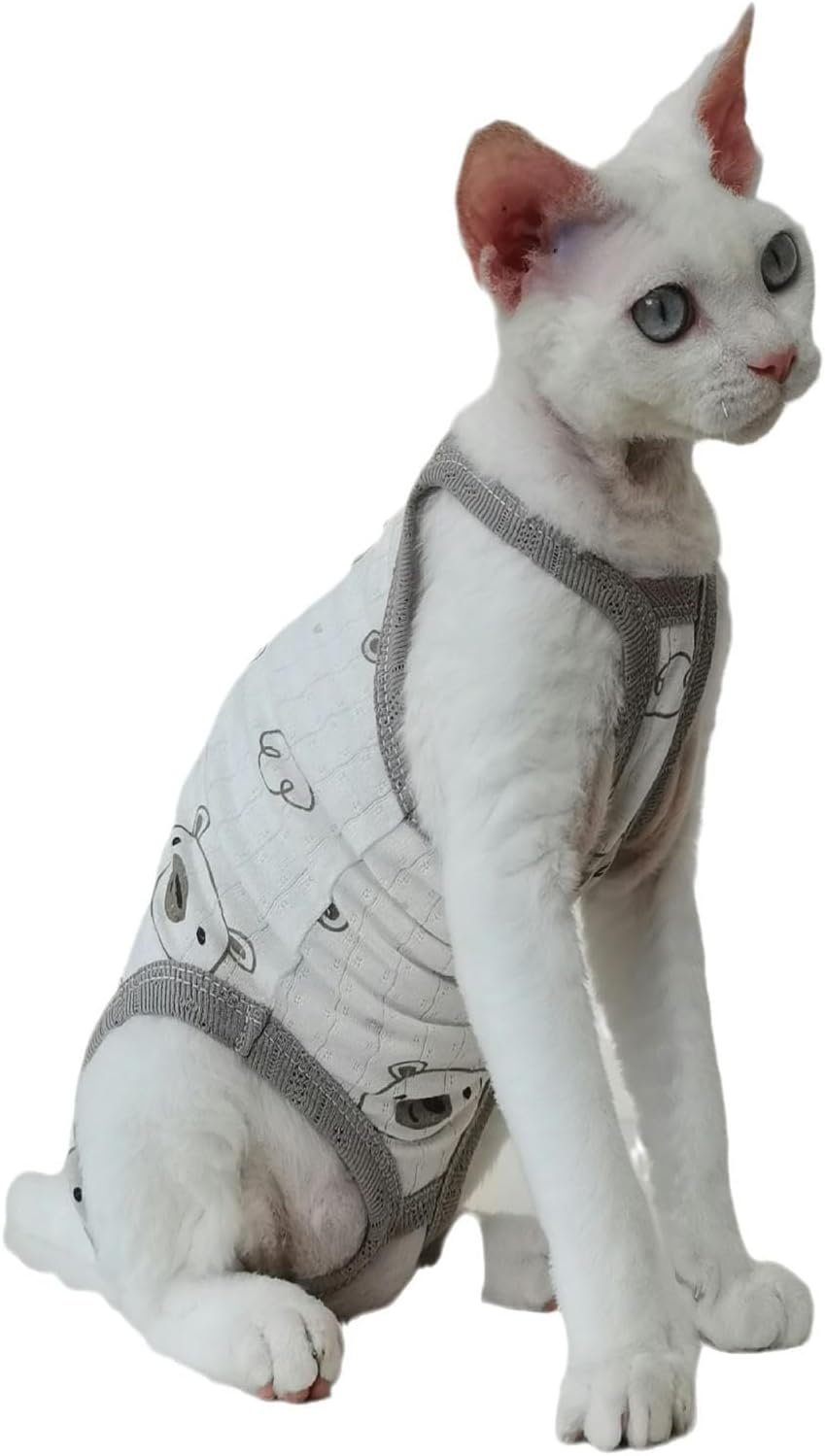 ウシアスフィンクス猫服夏の薄い綿ベストかわいい毛のない猫ベストプルオーバーストラップタンクトップキャットアパレルパジャマ