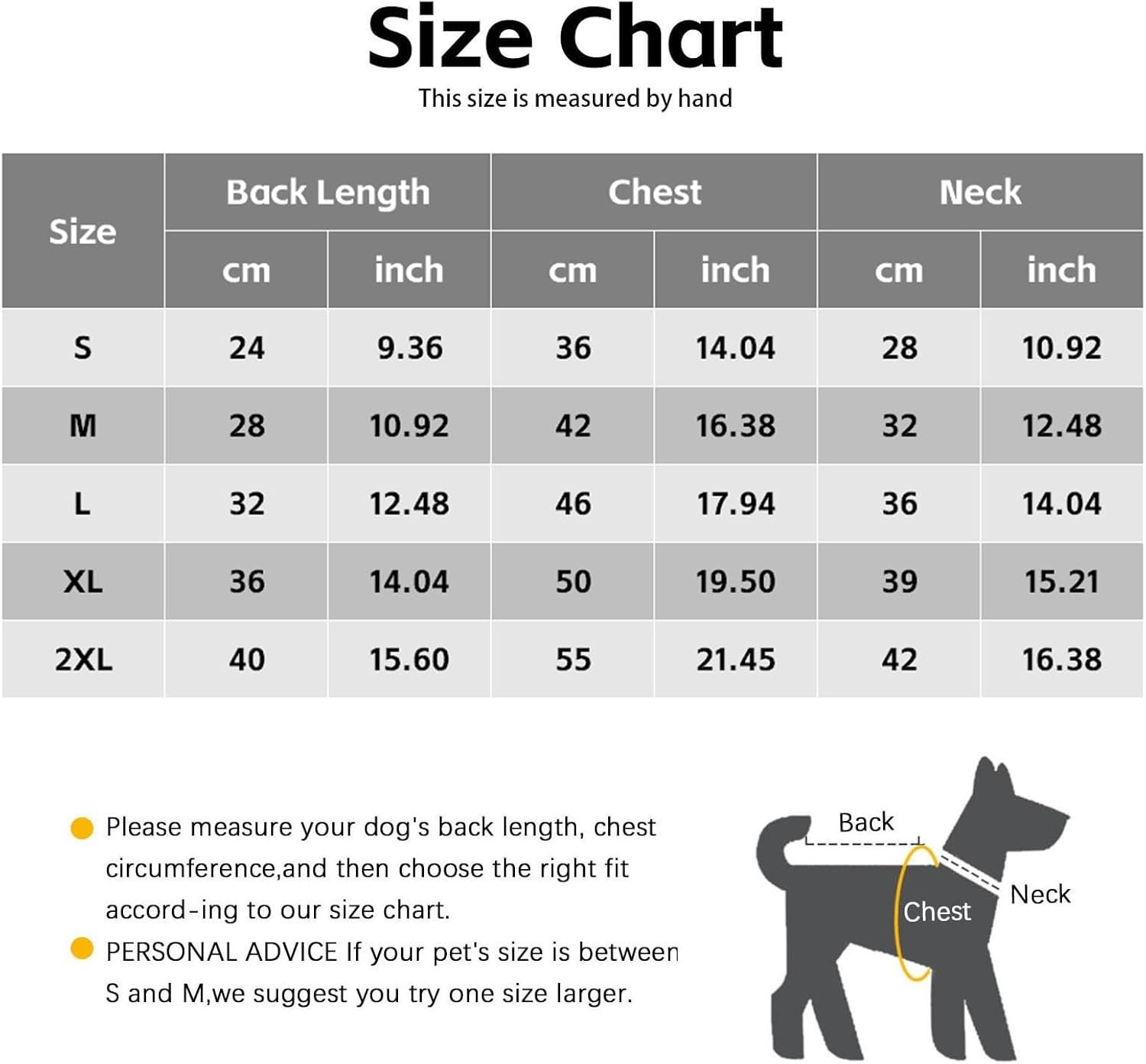 注意:注文する前に犬の胸囲、背中の長さと首の周囲の長さを測定して、そして私たちのサイズ表をよく見て、あなたがかわいいペットのために正しいサイズを選んで、もっと良い密着度を得ることを確保してください