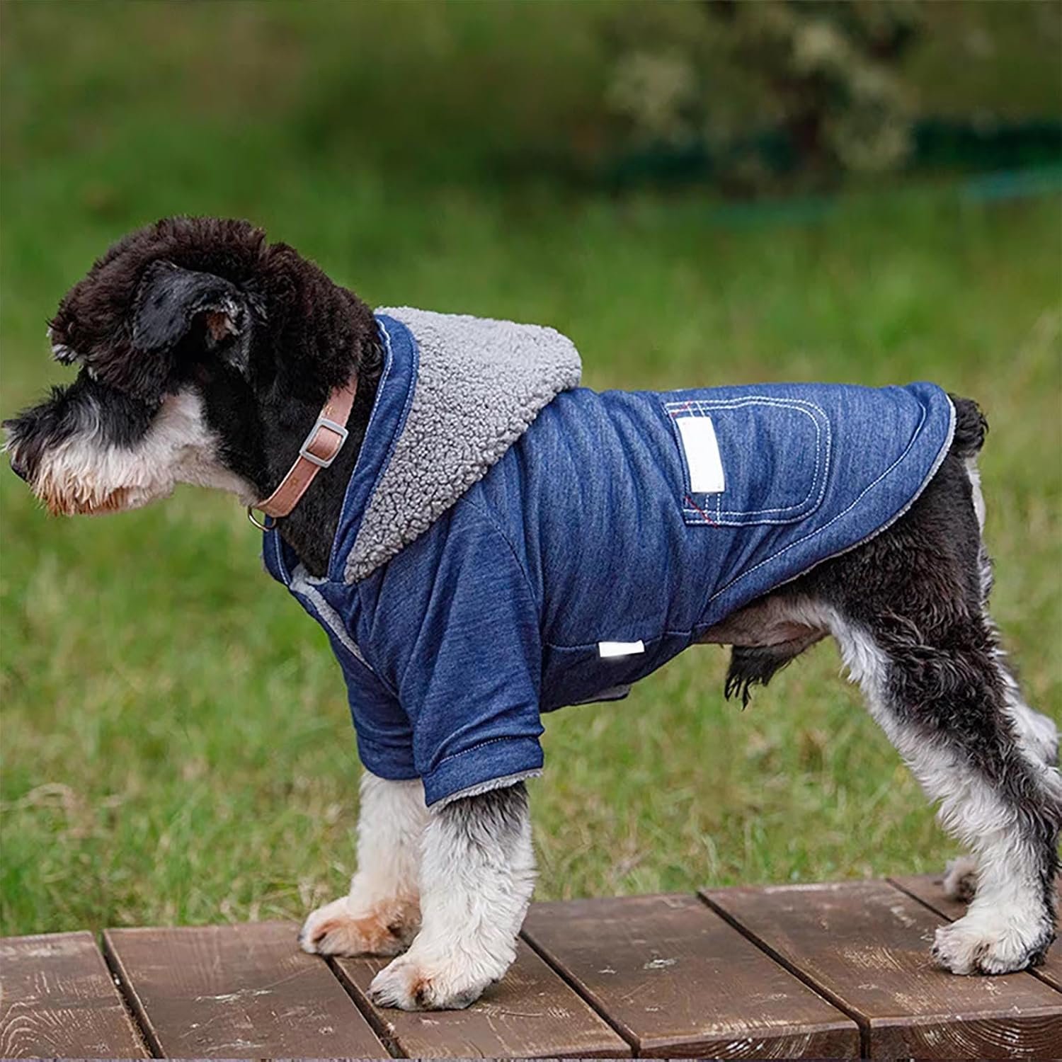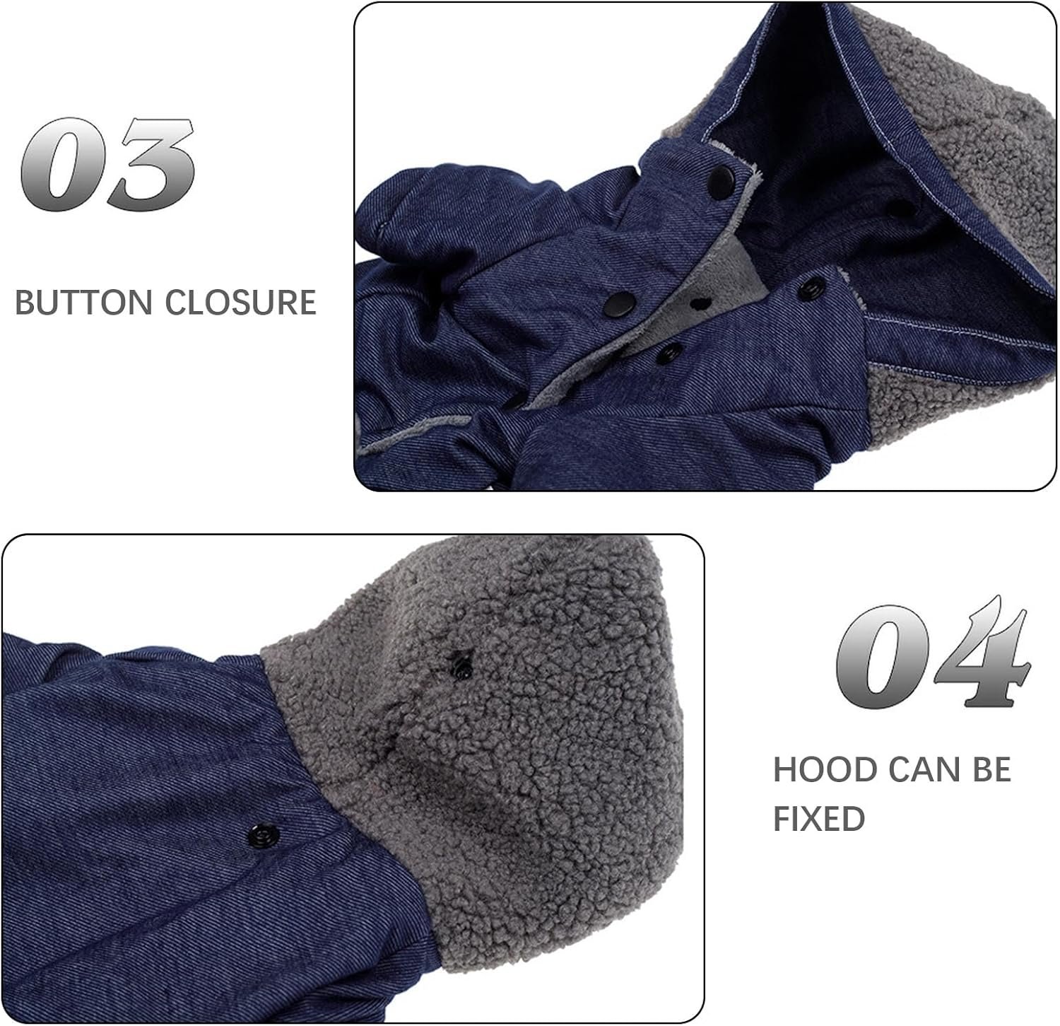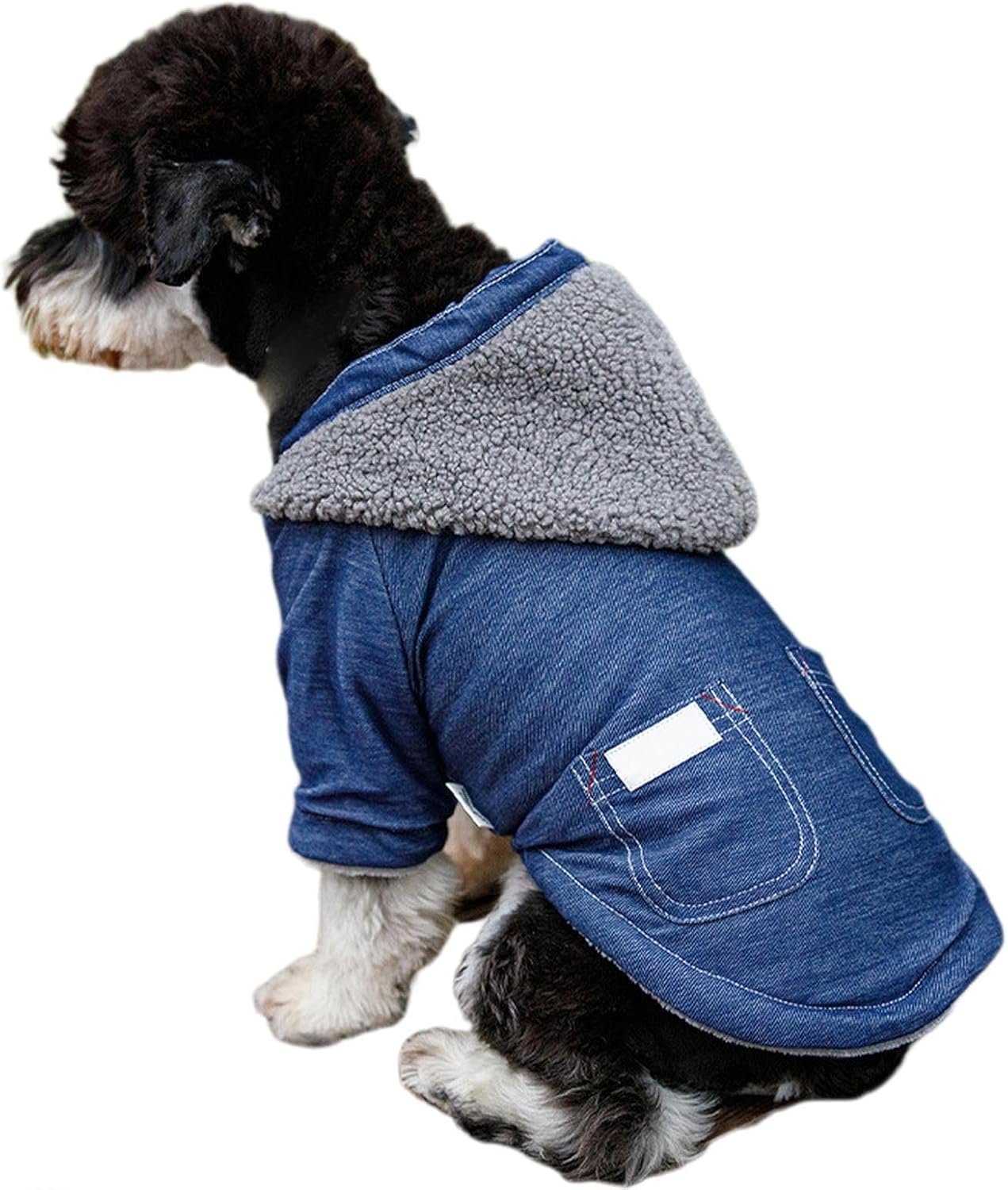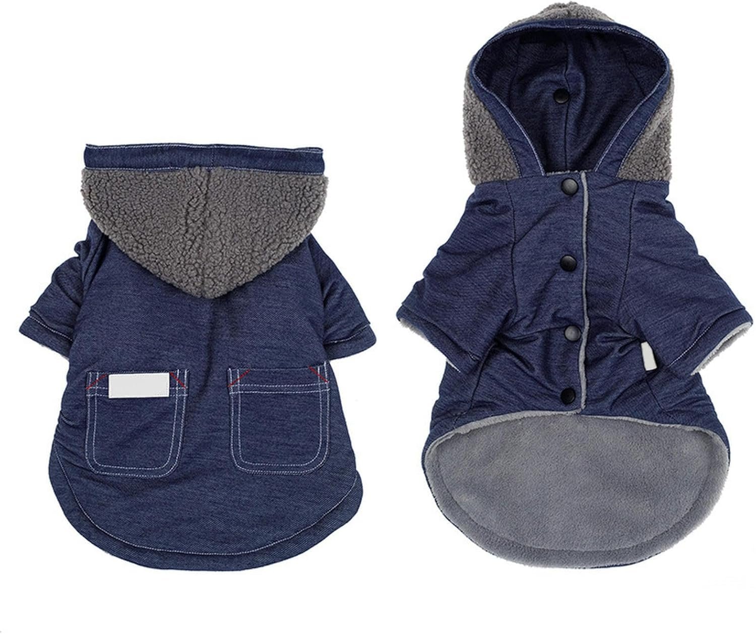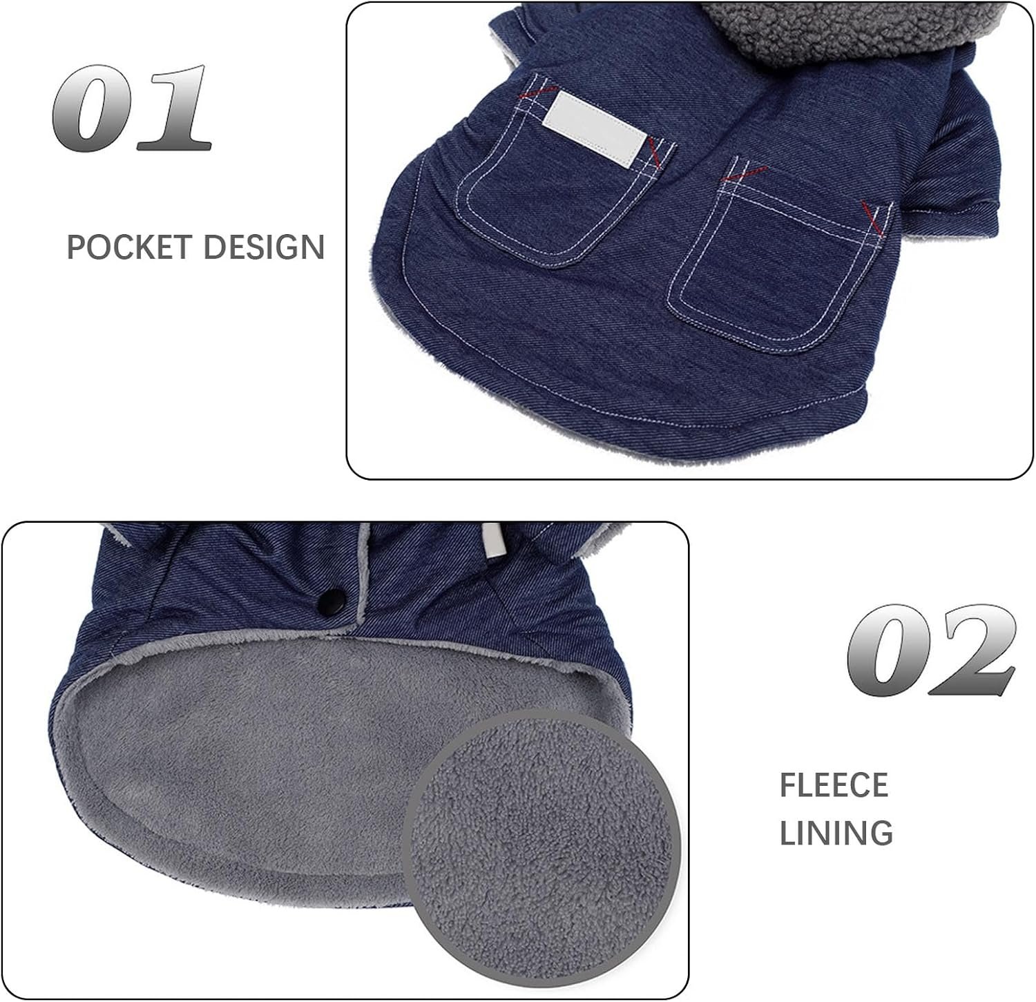 ウシアフード付き暖かい子犬ジャケット小型犬デニムジャケットフリース裏地付き厚手秋冬ペット服かわいい犬アパレル衣装チワワ・ヨーキー用