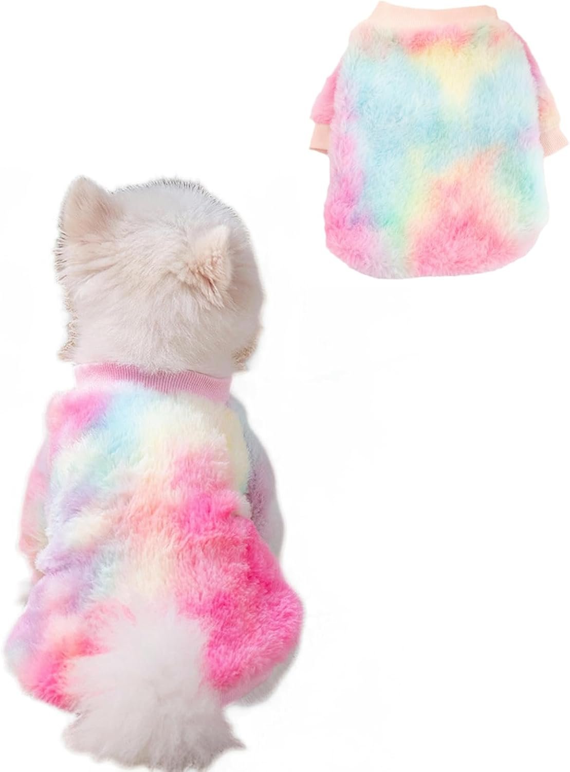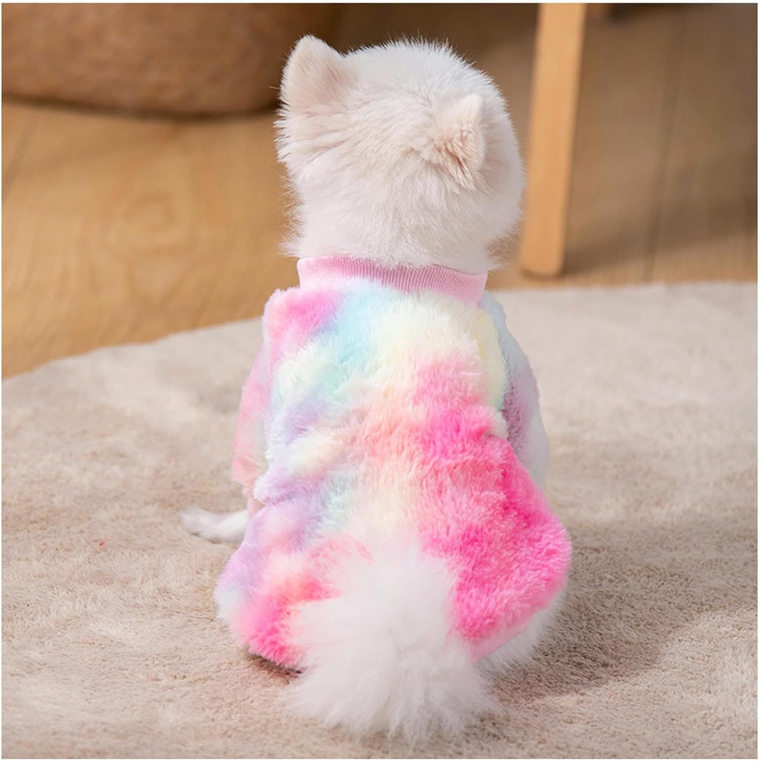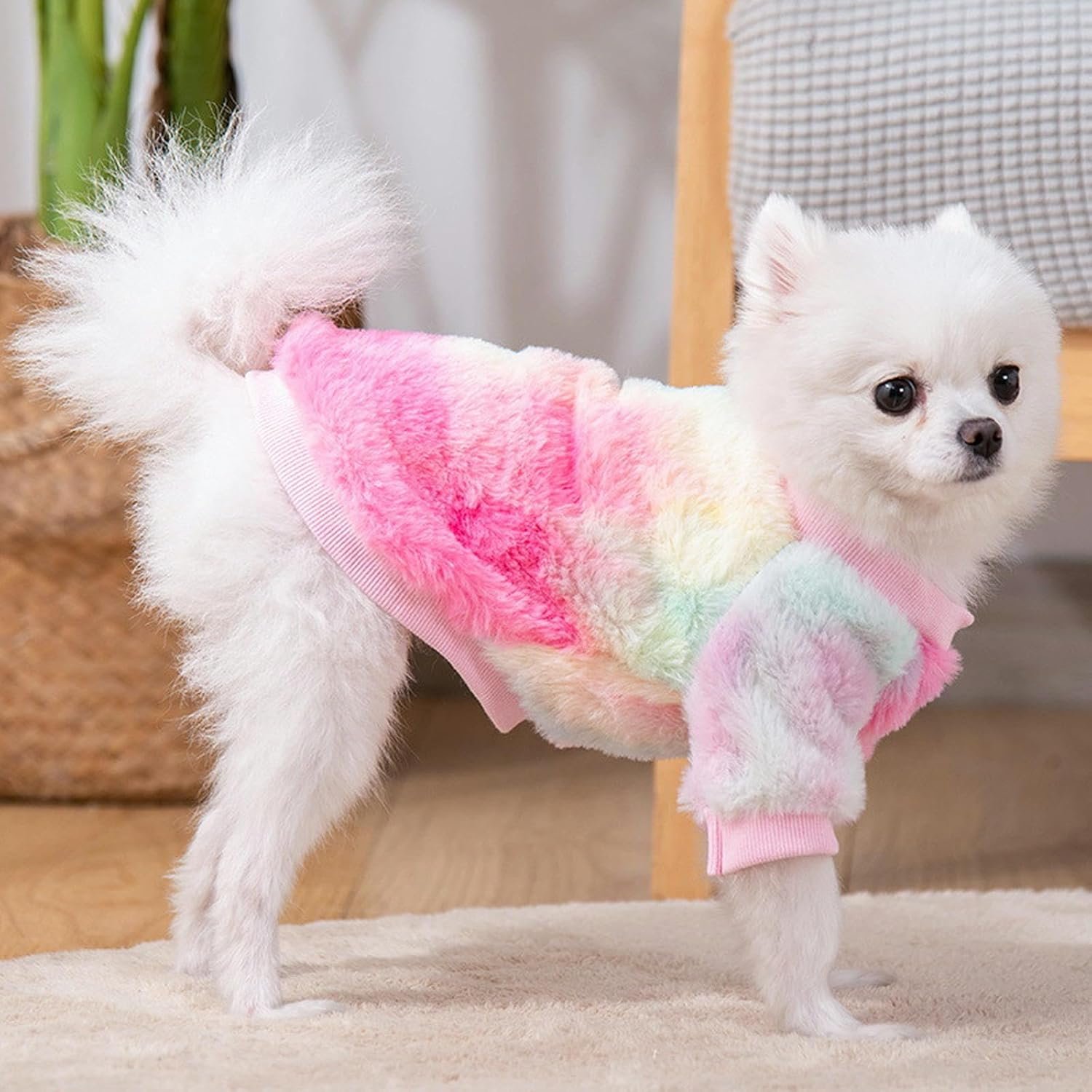 ウシア小型犬用の犬のセーター少女の少年、冬の暖かいふわふわの虹の犬服小犬チワワヨーキーティーカップ、ペットコート、猫アパレルの衣装