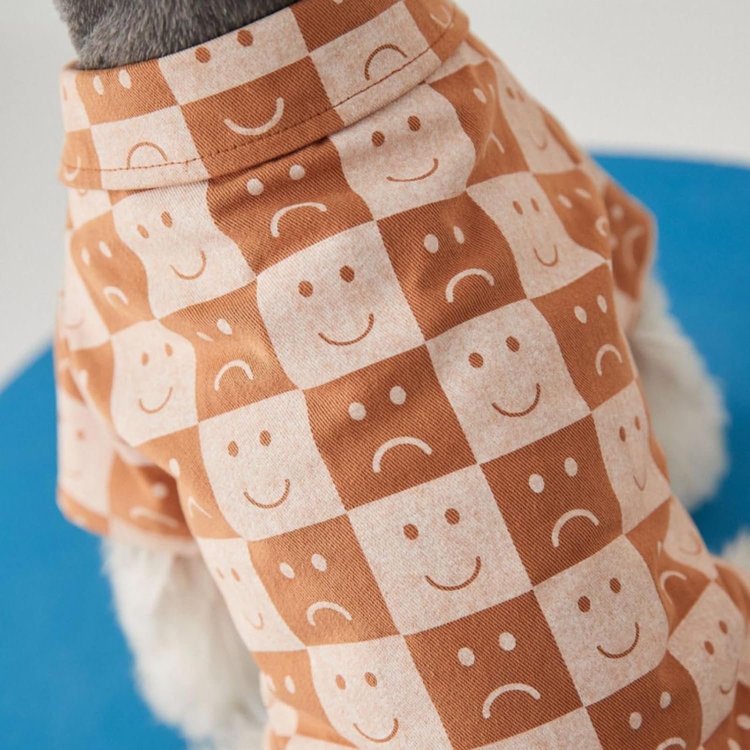 ファッショナブル:この犬のデニムシャツには、チェッカーとスマイリーフェイスパターンがあり、犬に性格の魅力を追加します。ファッショナブルで楽しい。それはエネルギーに満ちていて、あなたの犬の幸せで活気のある側面を示すことができます