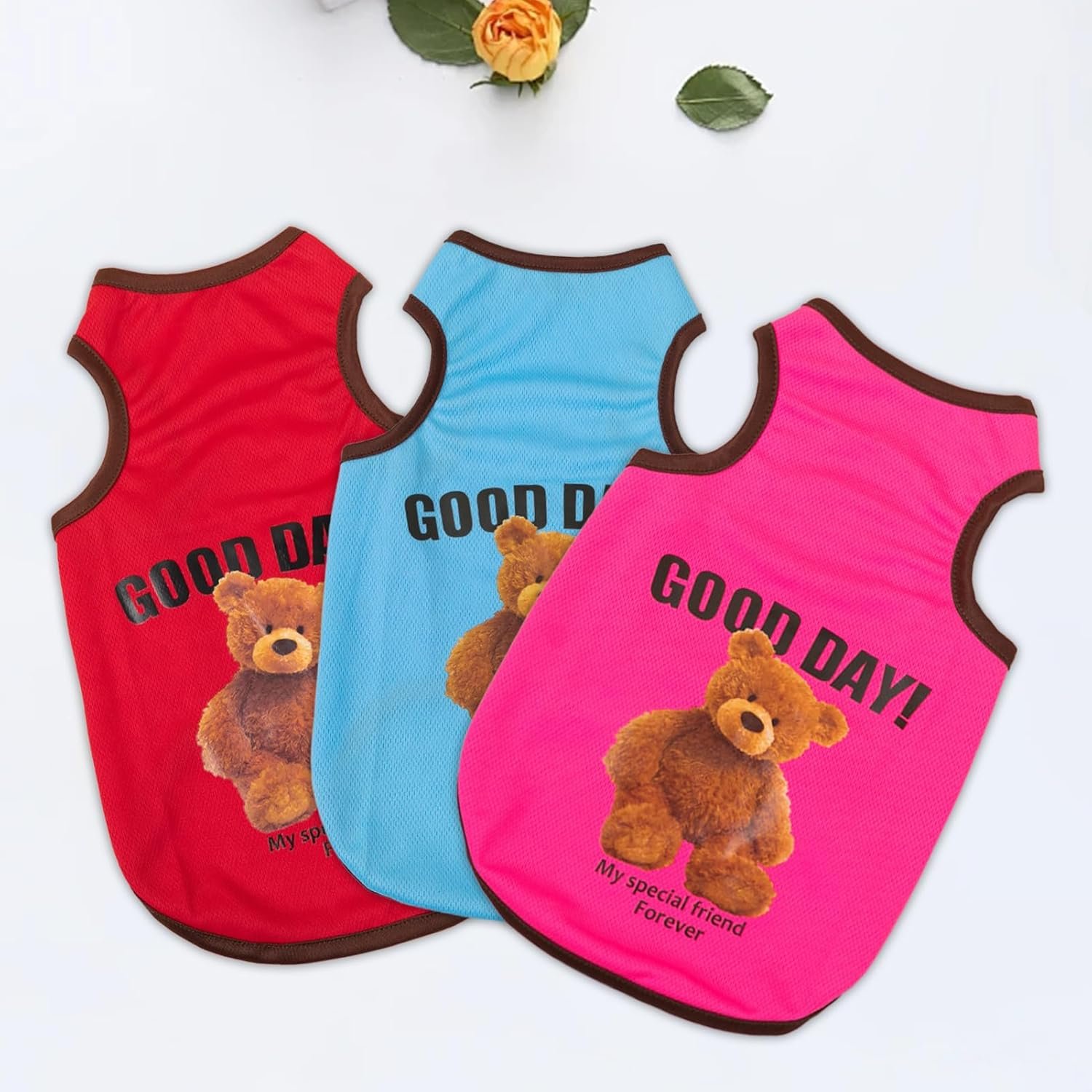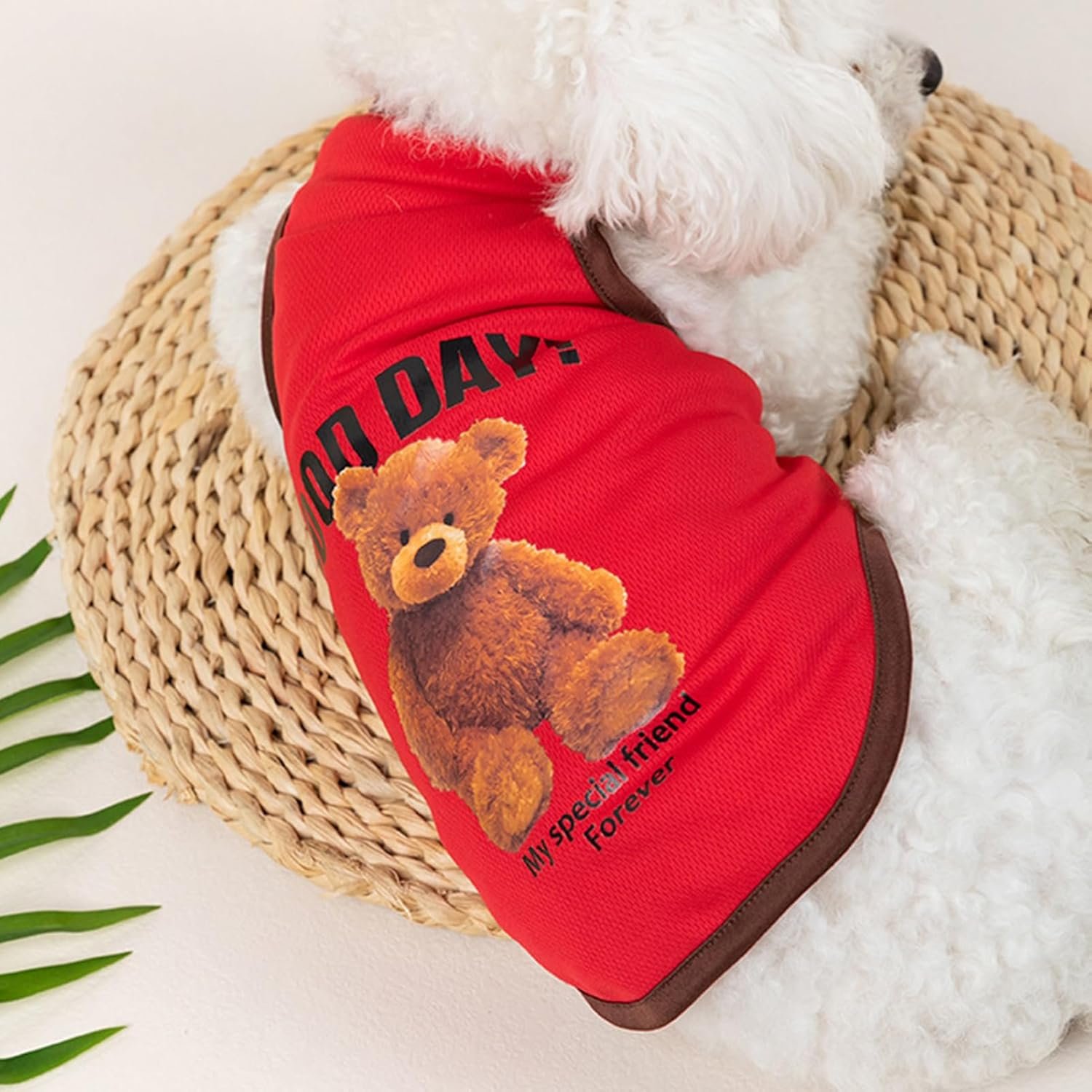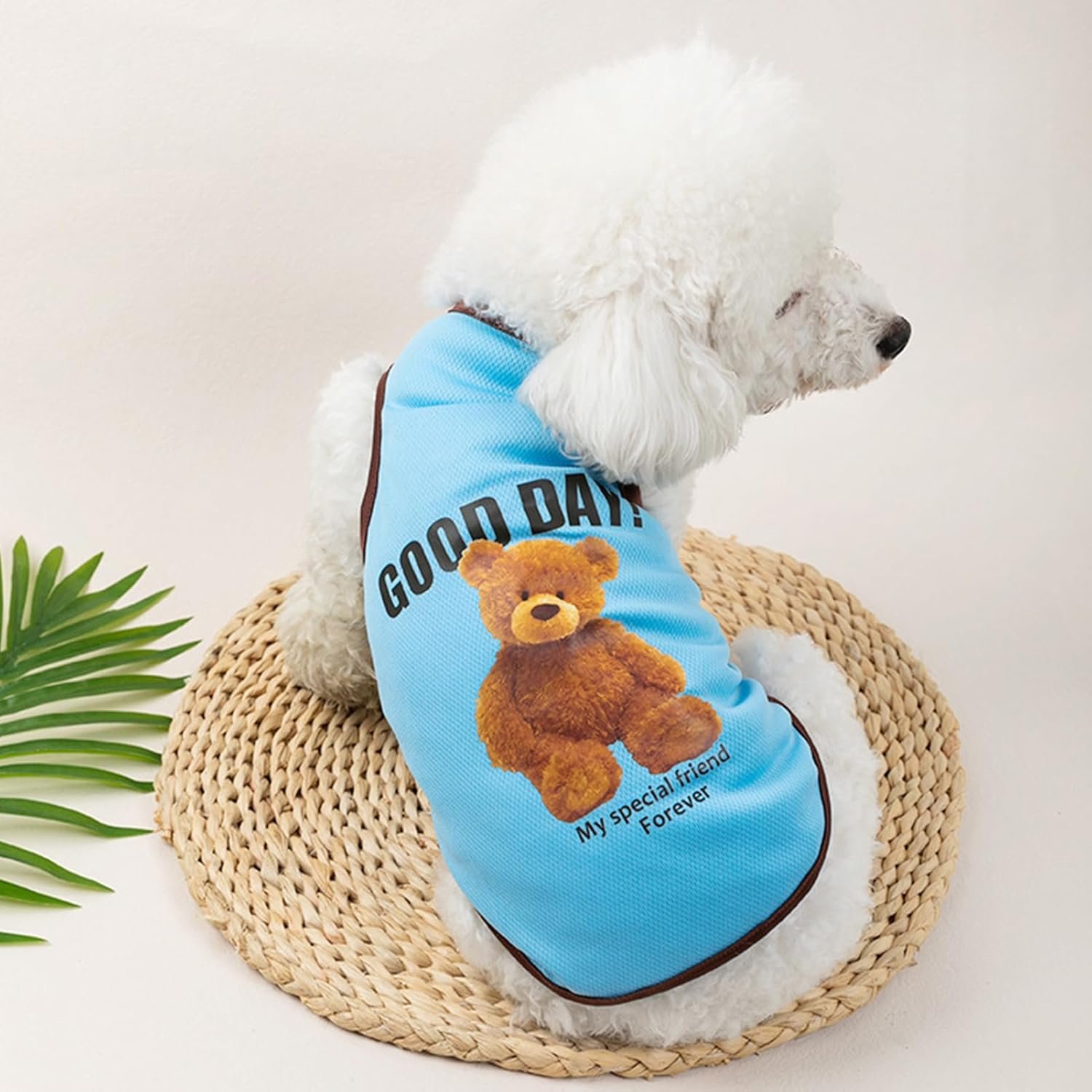 犬の服、春と夏、犬の服、ペットの服、小さな犬、薄い、袖なし、クマのプリント、Tシャツ、ノースリーブ、パジャマ、かわいい、ファッショナブル、柔らかく、通気性、速乾性、猫の服、ラウンジウェア、睡眠、ウォーキング、出て行く