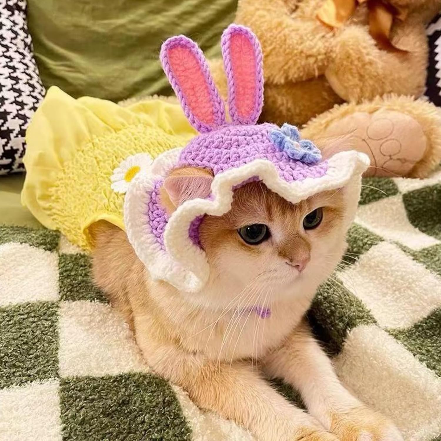 猫の帽子、猫のコスプレ、ペットの帽子、かわいいペット、パンダ、クマ、猫、犬、帽子、かわいい、春、夏の旅行、ウサギ(m)